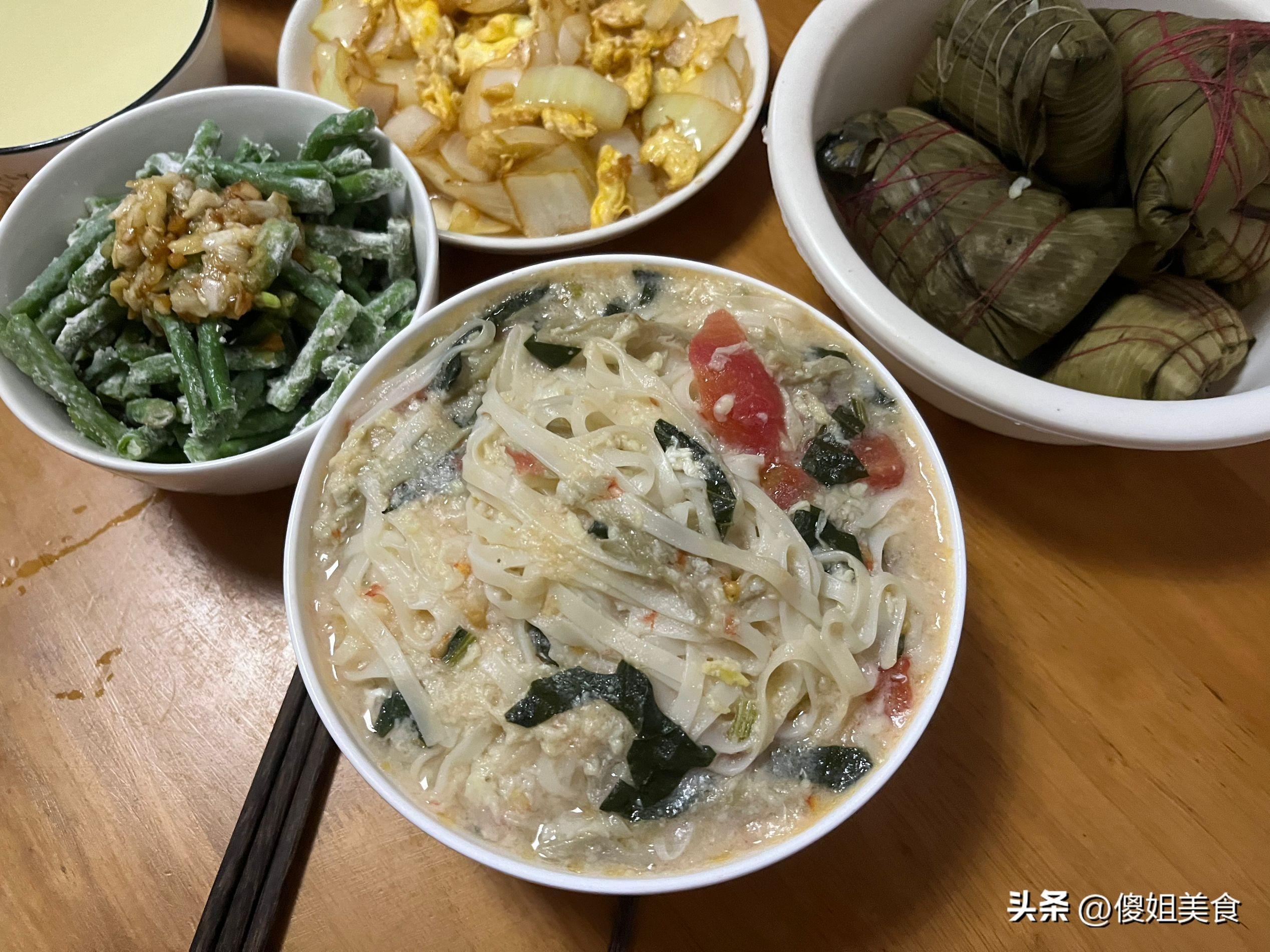 還有婆婆早上自己丟的爛麪湯一大碗,老人都捨不得扔,我中午熱了熱我給喫了,怕天熱了,婆婆喫了喫壞肚子。