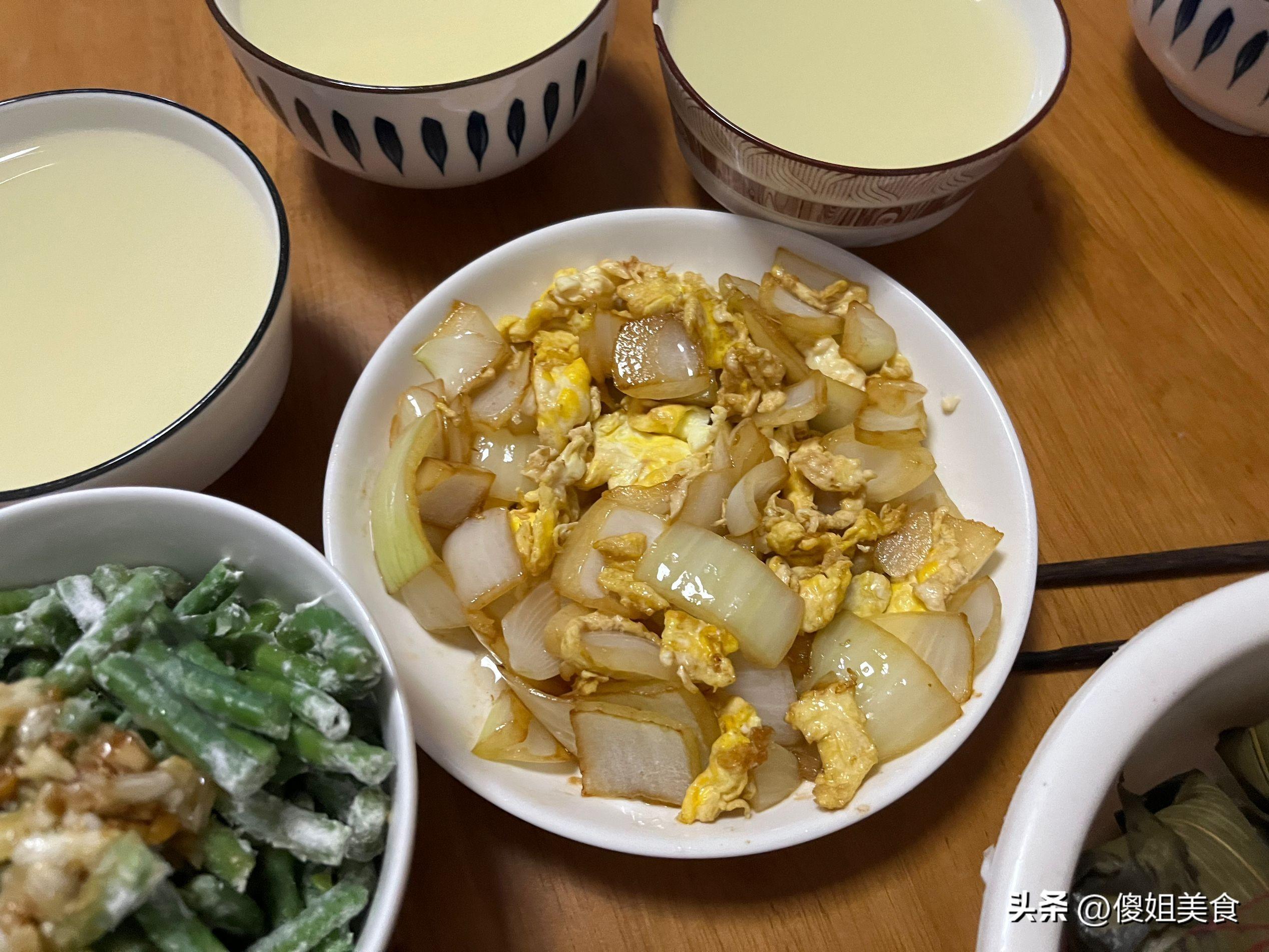 孩子們喜歡喫洋蔥炒蛋,正好用洋蔥搭配婆婆餵養的小笨雞下的雞蛋,隨手一炒鮮香美味。準備3個雞蛋打入碗內,把雞蛋攪散後先炒熟。另起鍋燒油把洋蔥塊炒8分熟,只放味極鮮調味即可,隨後把雞蛋塊倒進去攪拌均勻盛出來就可以。