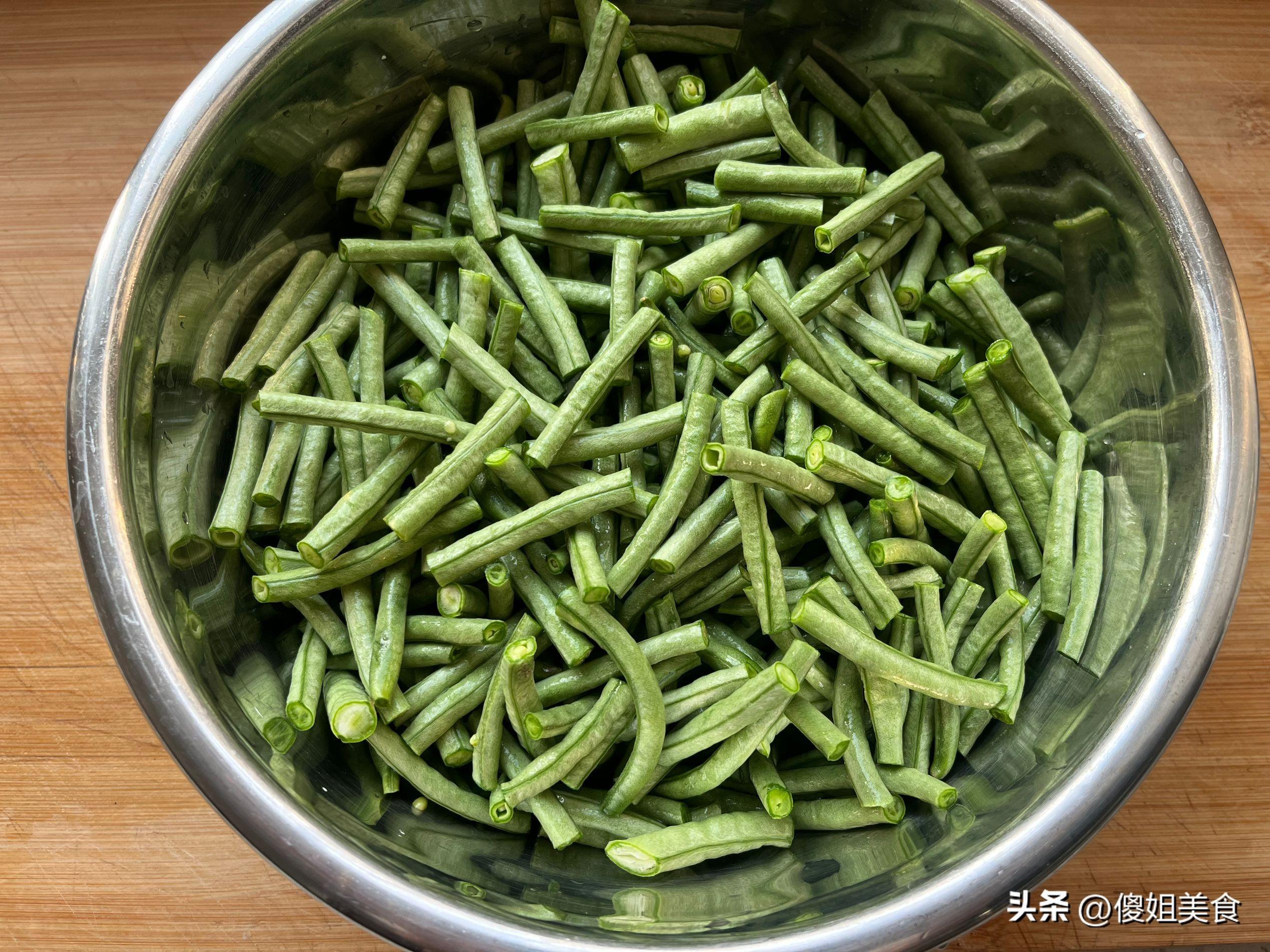 自己種的長豆角沒有打農藥,有的會長有小蟲子,摘回來的豆角把帶有蟲眼的掐掉不要,然後把豆角切成大概3釐米左右的小段,放入清水中撒上2勺食鹽,放一旁浸泡5分鐘,鹽水可以殺菌,最後把豆角用清水多洗幾遍,撈出來瀝乾水分備用即可。