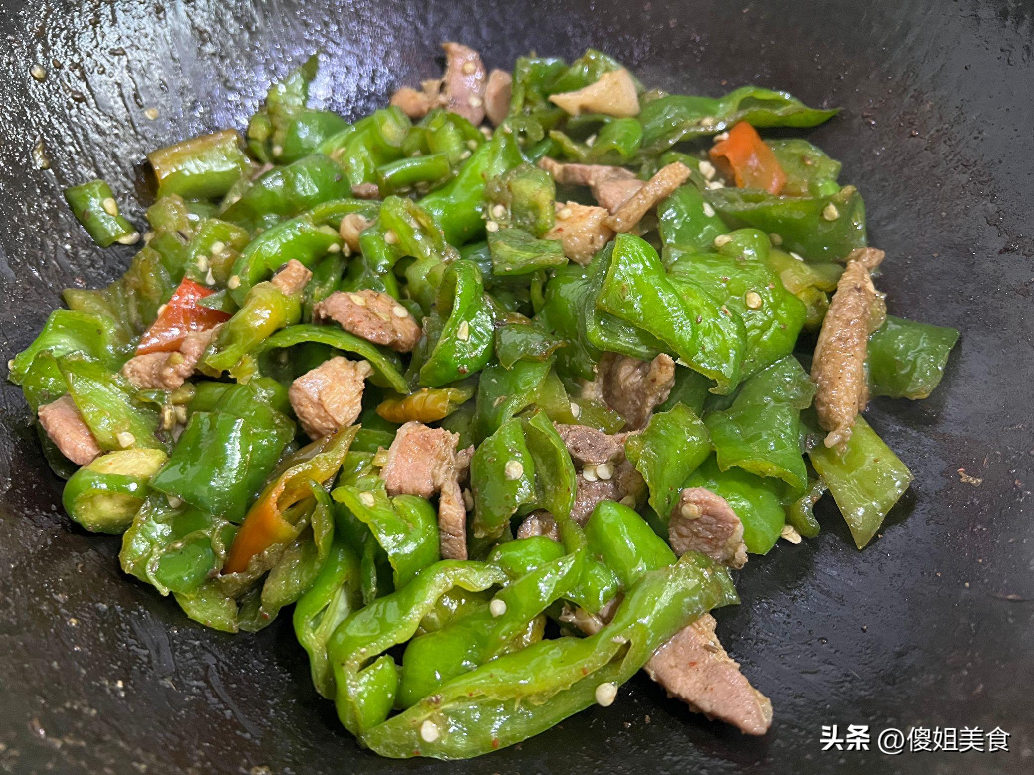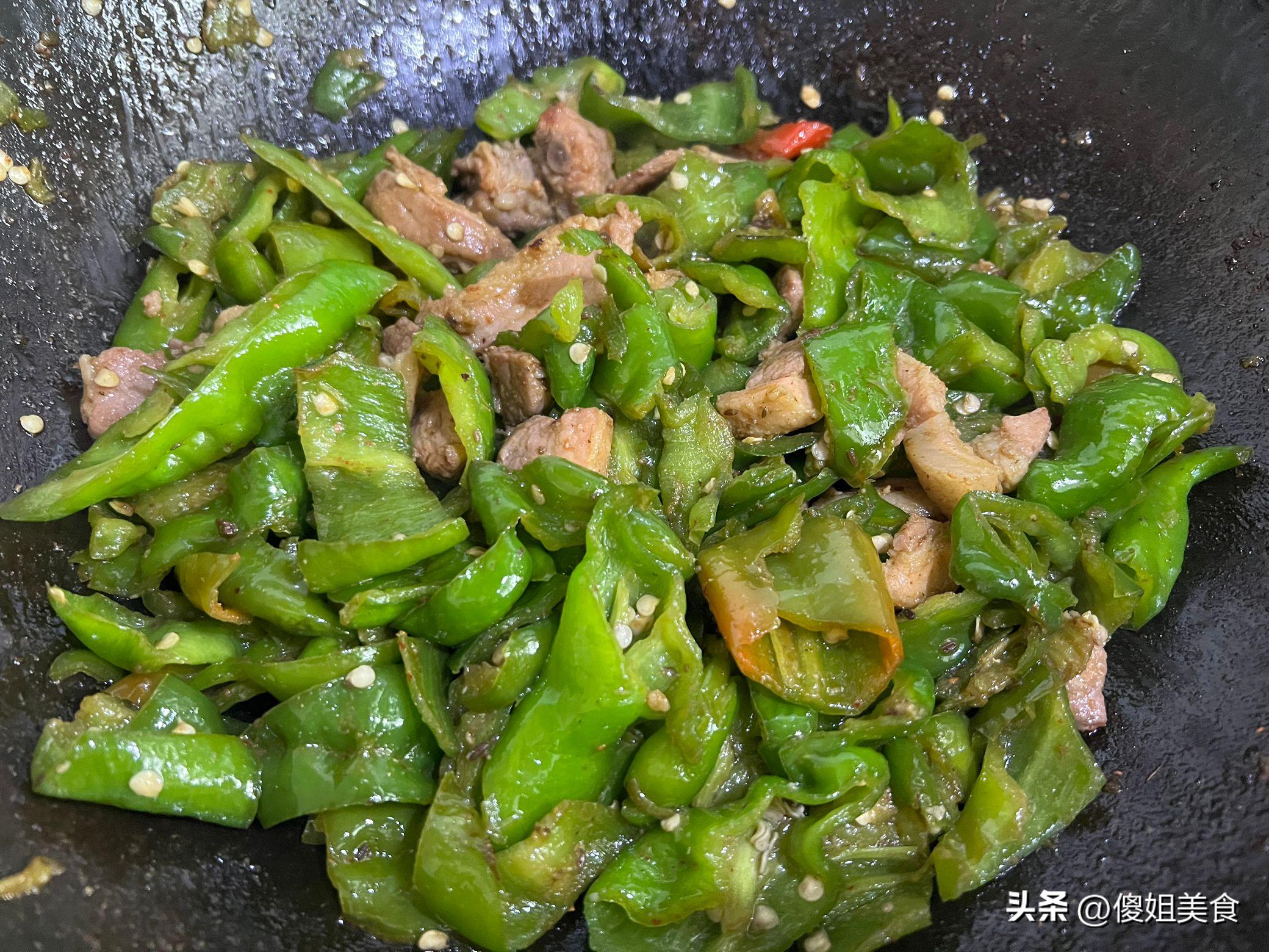 現在,一盤色香味俱佳的青椒炒肉就完成了!這道菜色澤誘人,辣椒的翠綠與五花肉的醬紅相映成趣。喫上一口,辣椒的脆嫩與五花肉的鮮香完美融合,讓人回味無窮。而且這道菜超級下飯,保證讓你在炎炎夏日也能食慾大增,享受美食的樂趣。