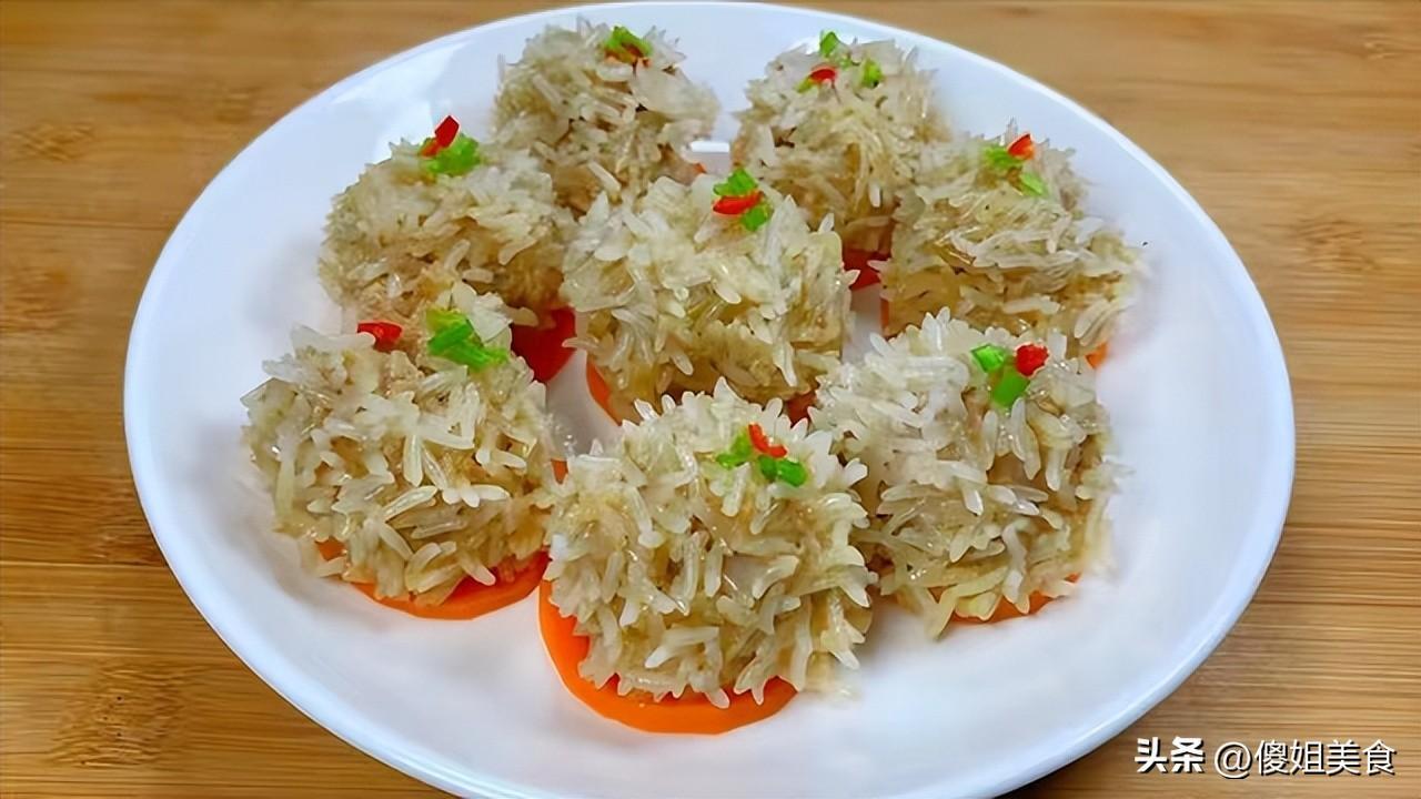- 製作丸子:將醃製好的豬肉餡與蓮藕丁混合均勻,然後取適量肉餡,在手中搓成丸子形狀。接着,將丸子在泡好的糯米中滾一圈,讓其均勻裹上一層糯米。