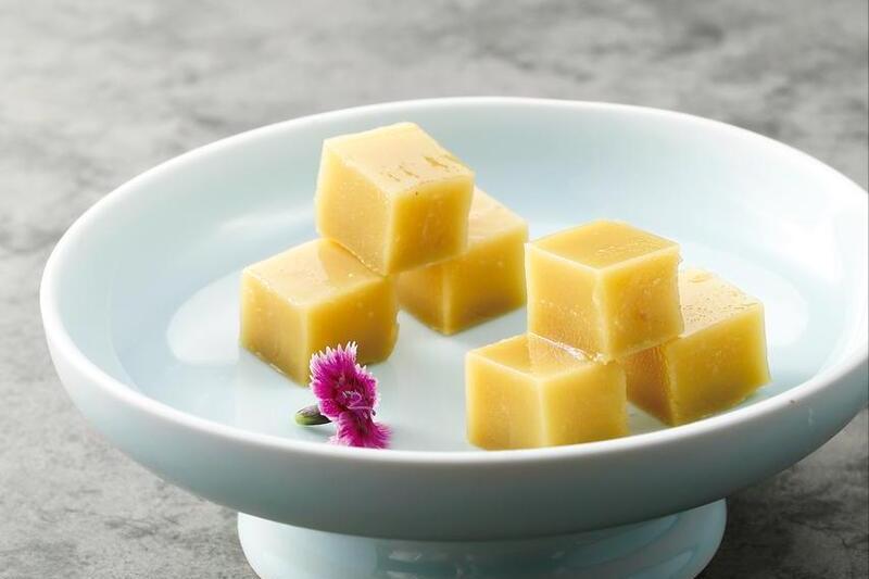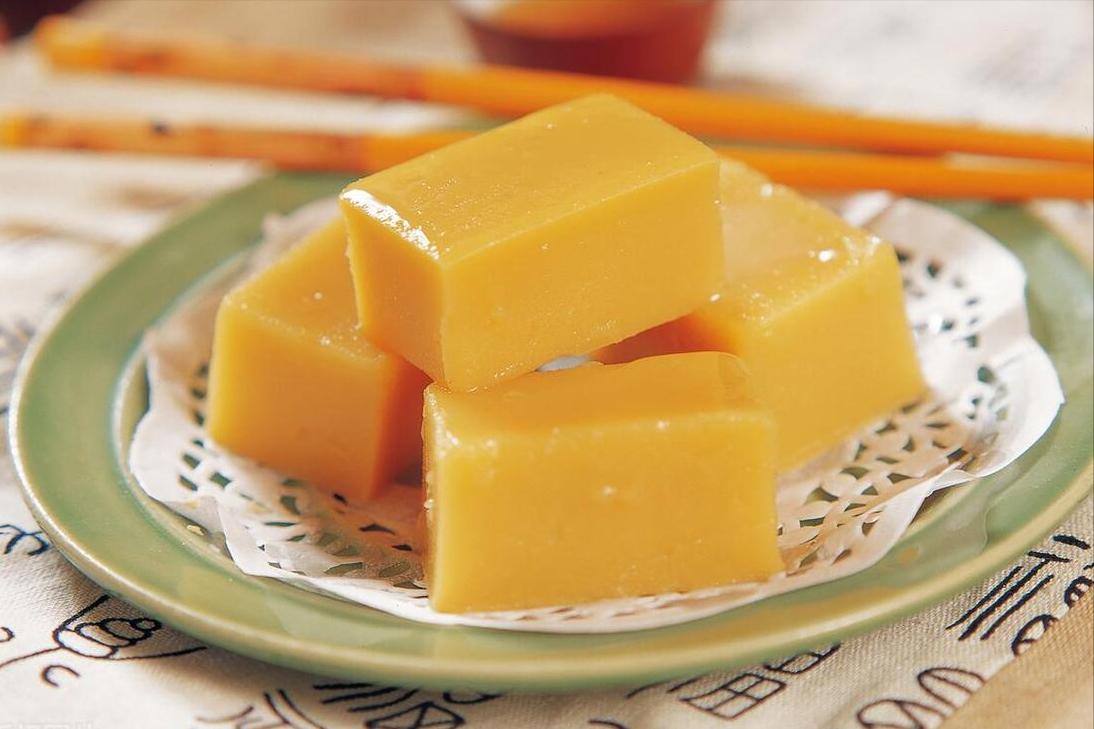 2、改爲小火繼續煮30分鐘,然後關火後晾涼,徹底晾涼後放在料理機中,打成泥狀,然後把白糖也加進去,攪拌均勻後倒在鍋子裏,開小火不停翻炒,直至炒到黏稠,盛出來倒在一個容器內,放冰箱內冷卻後脫模,然後切成小塊就可以開喫啦。