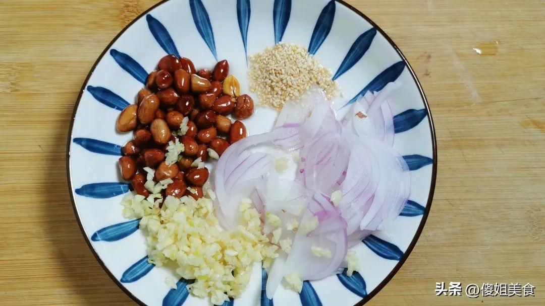 - 準備調料:將蒜末、生抽、香醋、鹽、白糖、香油混合在一個小碗中,攪拌均勻,備用。如果你喜歡辣味,可以切一些小紅辣椒,或者加入少許辣椒油。