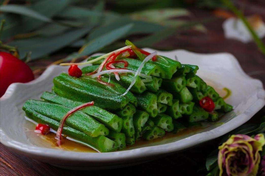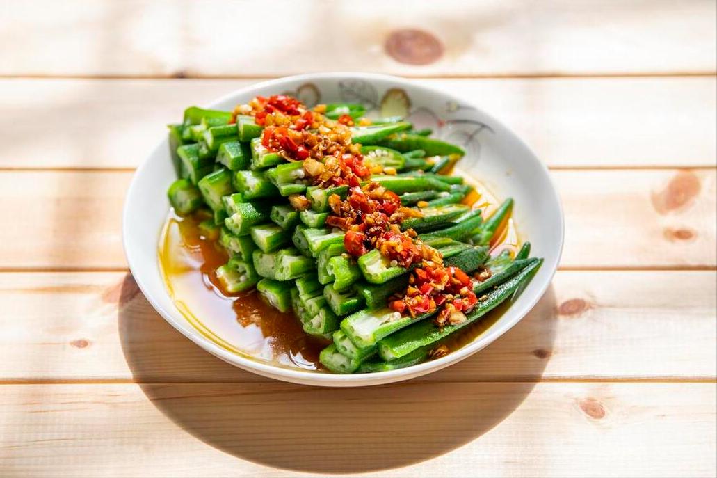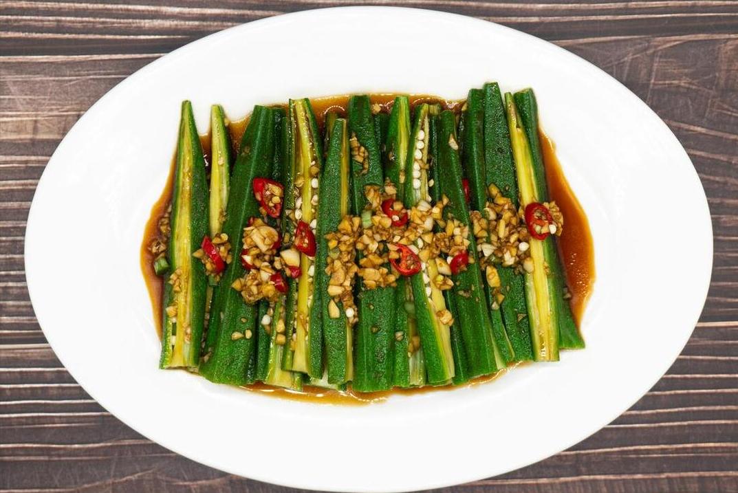 食材:秋葵、大蒜、幹辣椒、生抽、醋、蠔油、鹽、白糖、雞精、食用油