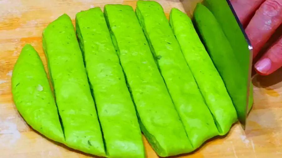 【菠菜面片】菠菜、西紅柿、土豆、麪粉、鹽、油