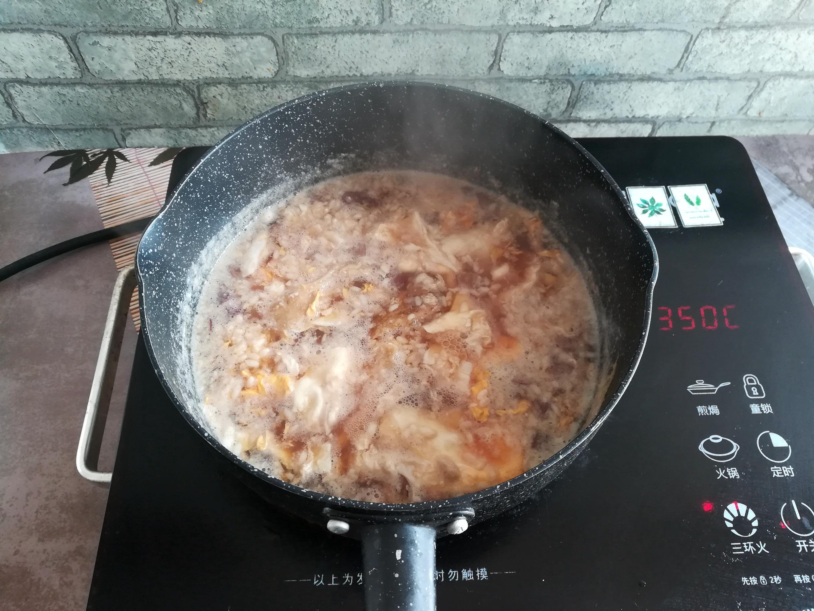 雞蛋煮熟後,放入甜酒,一邊煮一邊攪散。甜酒一定要最後放,提前放會發酸,口感不好。