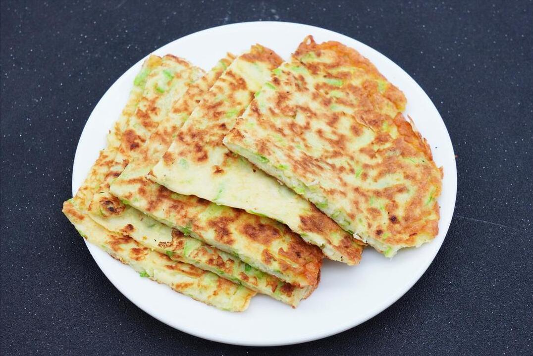 4、然後將劑子取出來,放到案板上,用擀麪杖擀成薄一點的餅狀。鍋子燒熱,不需要放油,放的話也是放一點點就行,然後把麪糰放進去開始烙,兩面都烙到金黃,鼓起來之後,就可以出鍋啦,切成小塊開喫!