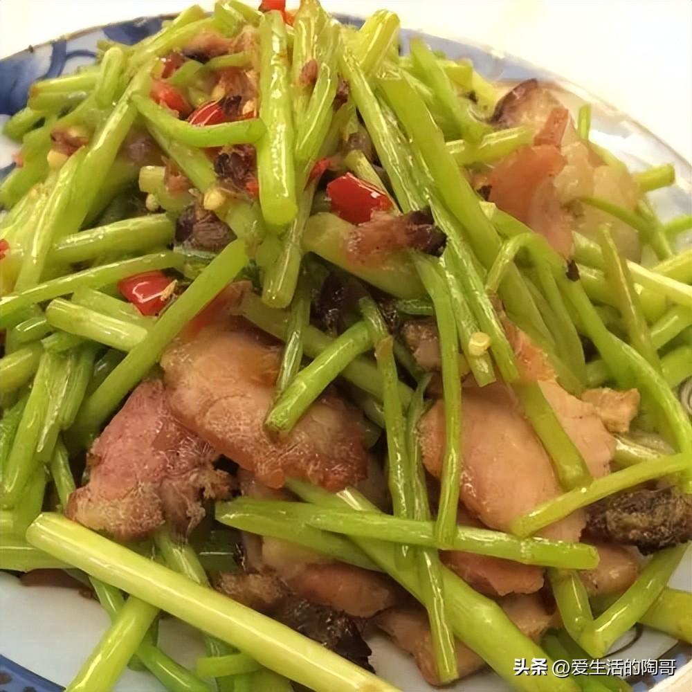紅薯葉可以分開來喫,單獨喫葉,葉可以單獨喫莖稈。北方人只喫杆子,南方人愛喫嫩葉!把莖稈單獨來喫,搭配臘肉一起炒,隨手一炒,又脆又嫩真解饞。