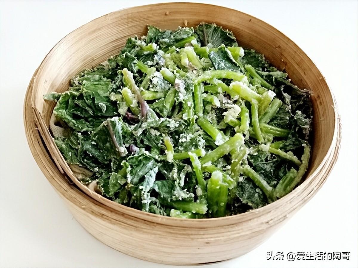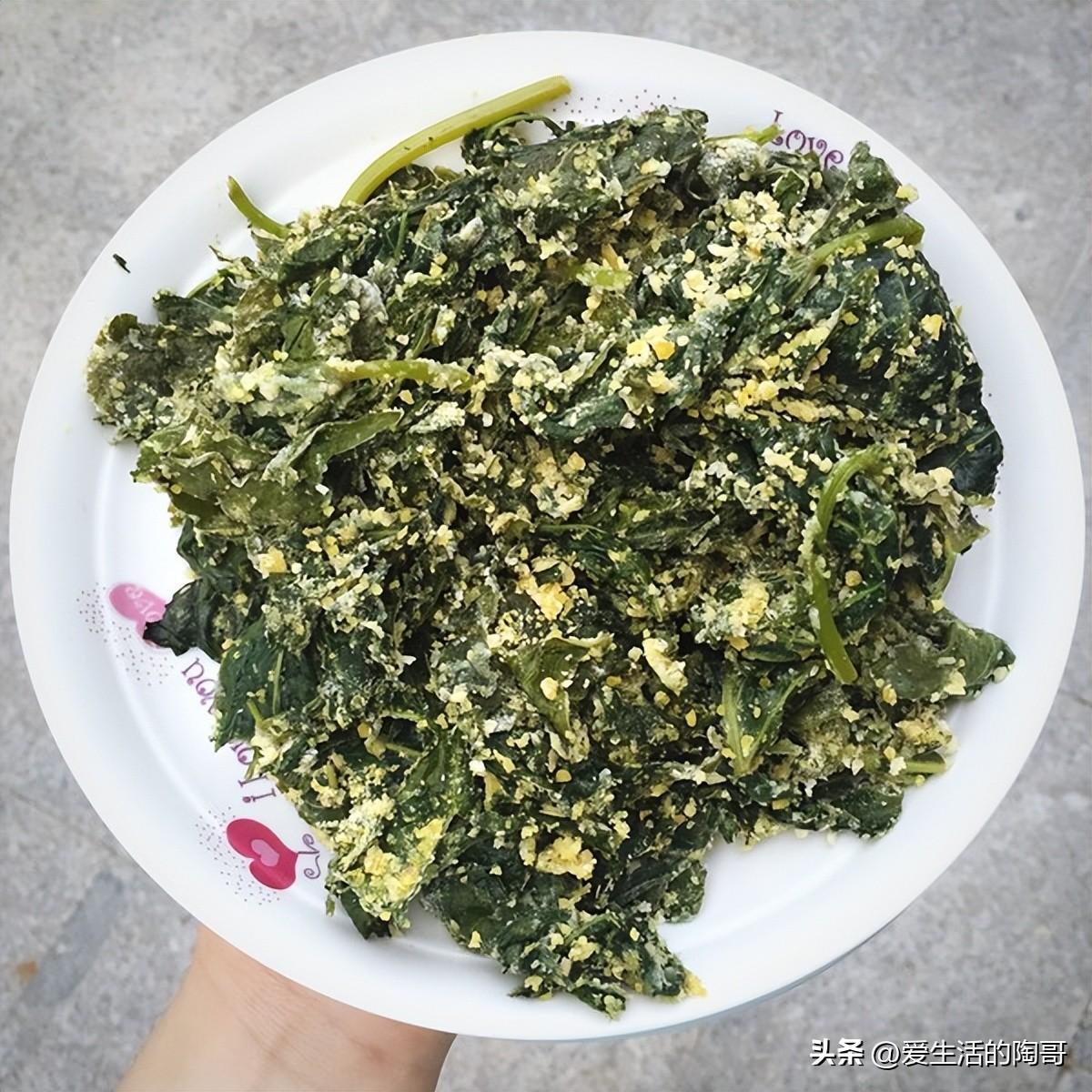 紅薯葉搭配麪粉一起蒸着喫,既可以當菜,還可以當主食,美味好喫。
