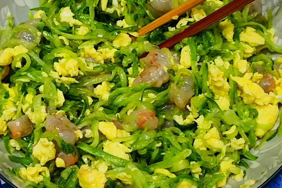 準備食材:黃瓜3根 鮮蝦 雞蛋適量