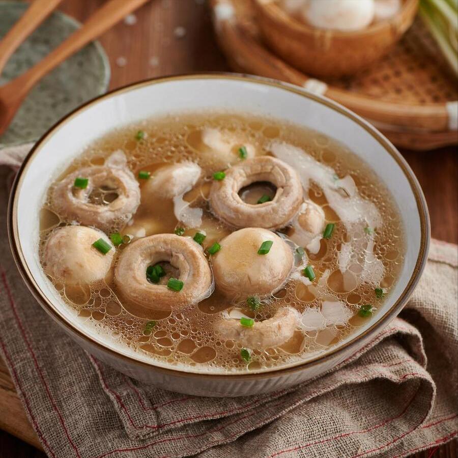食材:口蘑、蔥花、鹽、白胡椒粉、食用油