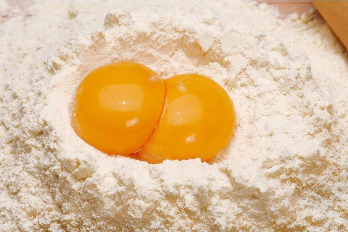 3、它就是雞蛋,換成雞蛋來和麪,麪條更勁道,爽滑不斷裂,這就是“關鍵1點”。接下來咱們把雞蛋直接打在麪粉中就行,1斤麪粉用2個雞蛋,是剛剛好的,再多也不能超過3個,不然雞蛋太多的話沒什麼好處,反而容易造成麪糰發硬。