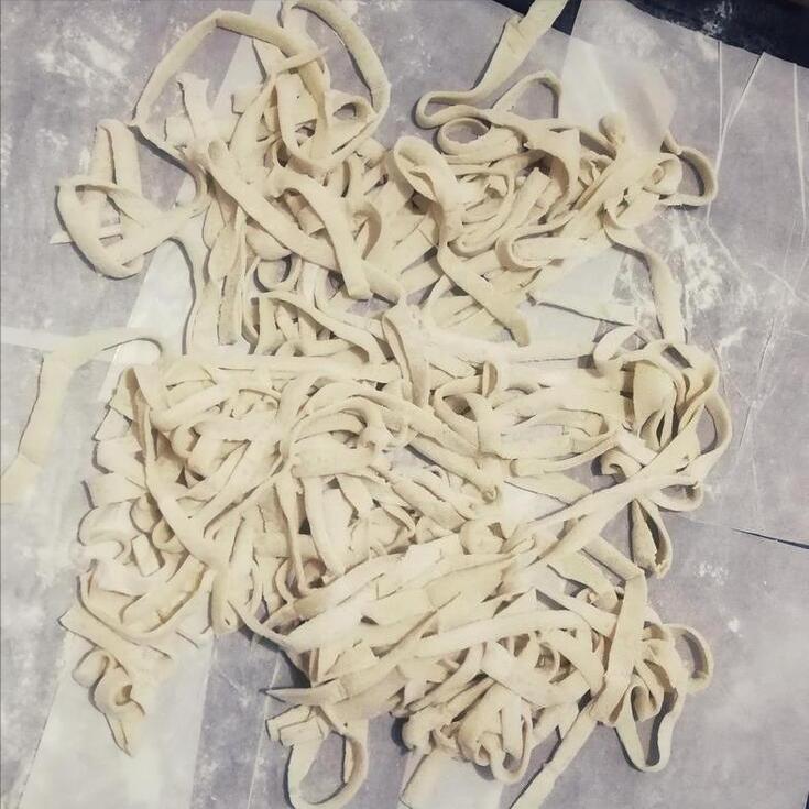 說是喫麻辣燙喫的,估計是裏面泡發的東西不新鮮了,不知道是木耳還是筍。最近想喫麪條,我也不打算出門買了,就直接自己在家做,做出來的手擀麪,勁道有嚼勁,不比去外面買的強?