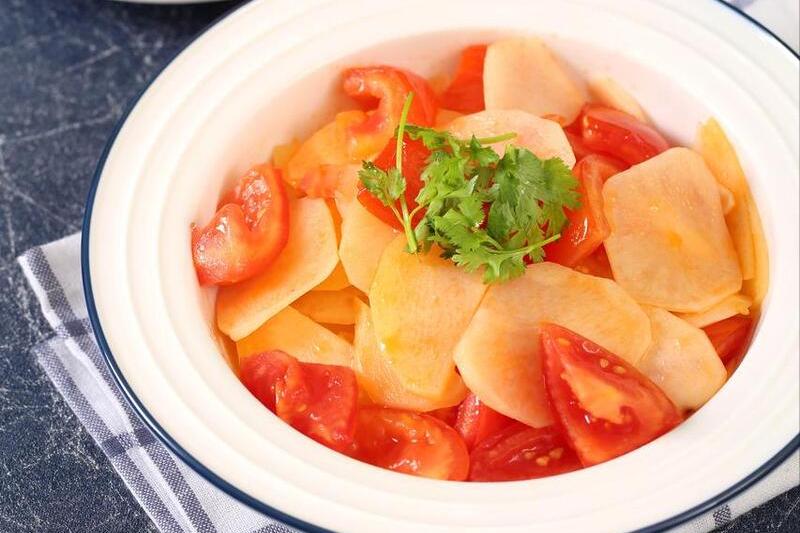 西紅柿中,含有豐富的鉀元素,夏天容易出汗,常喫它可以調節體內的離子平衡,補足精氣神,一身輕鬆。除此之外還可以補充膳食纖維、維生素C等多種營養元素,起到美容養顏、補水、健脾開胃等好作用。