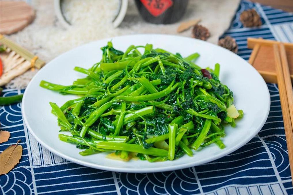 空心菜,是非常適合夏天喫的一種菜,營養價值極高,這種鹼性菜常喫清熱解暑,促進腸胃蠕動。