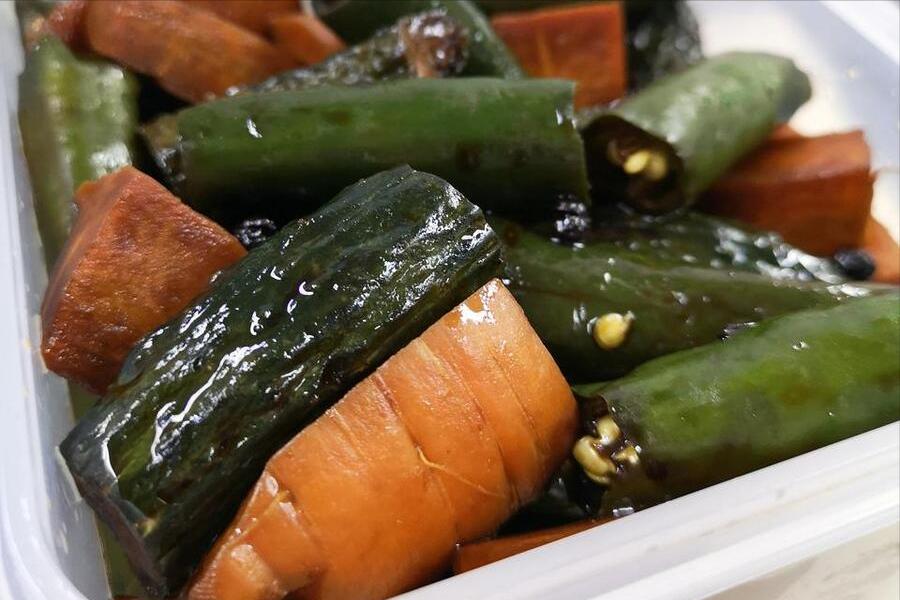除了生喫、炒着喫之外,把黃瓜醃起來也不錯,醃黃瓜更下飯,而且還能保存好幾天,留着慢慢喫。有了醃黃瓜,最近我也不用早起做飯了,隨便弄點麪條就行,搭配黃瓜一起喫,清爽開胃。