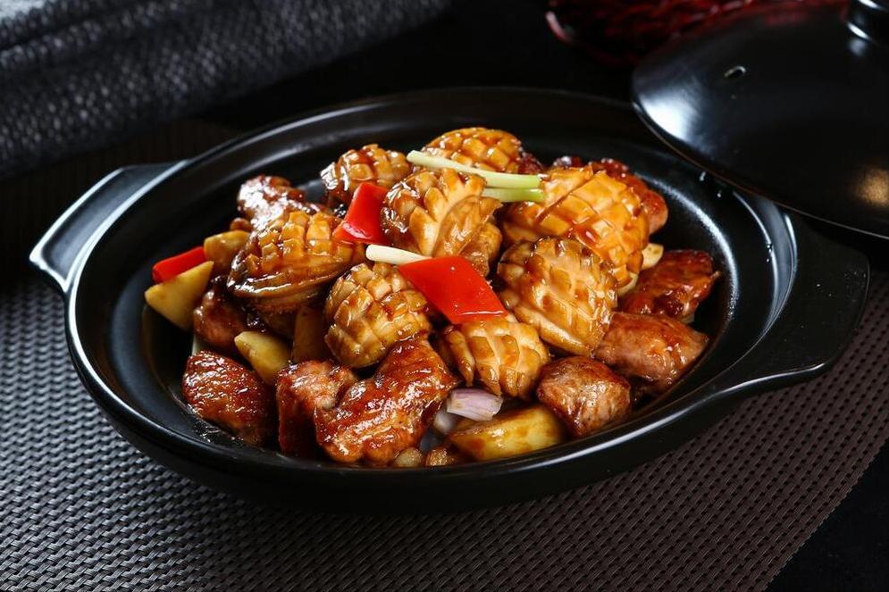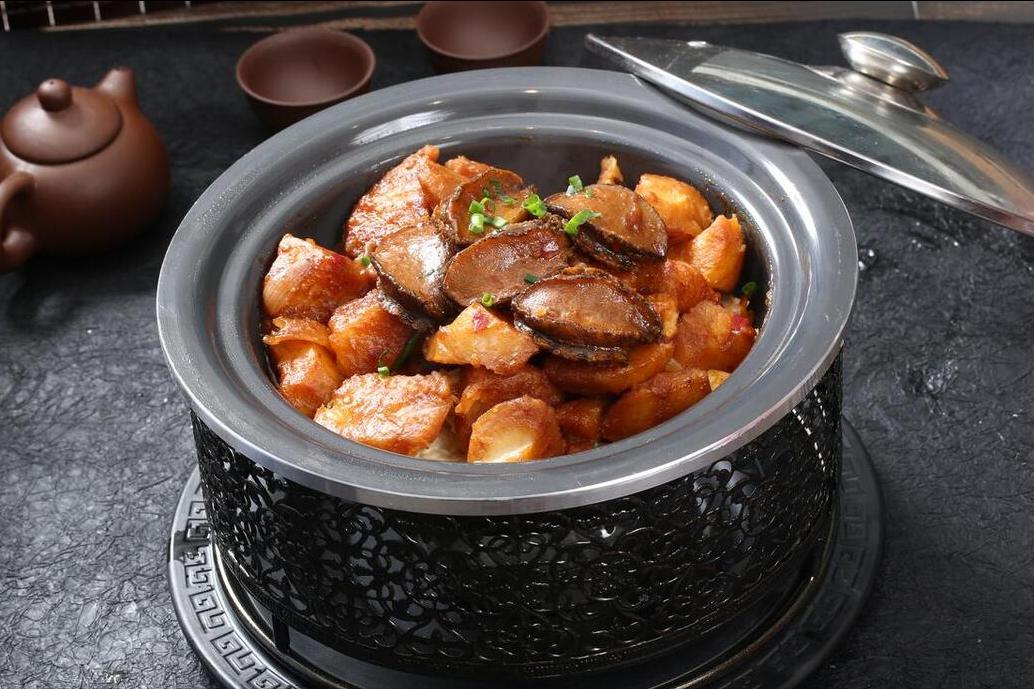 3、大火燒開之後,繼續燉40分鐘,然後把土豆和鮑魚都放進去,繼續燉上30分鐘左右的時間。到時間之後,加點鹽和雞精調味,然後開大火收汁,就可以出鍋開喫啦,香味撲鼻!