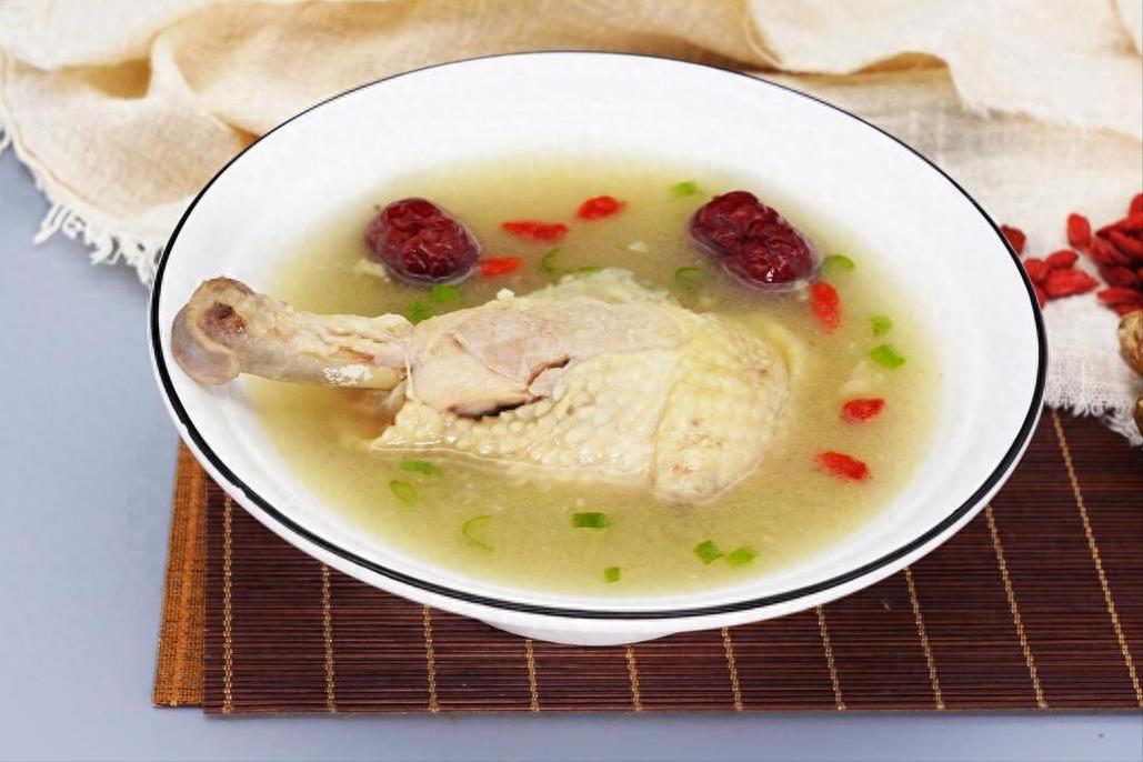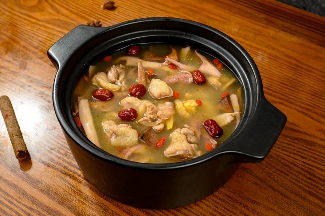 6、大火煮開以後,改爲小火繼續燉,燉上至少1個小時的時間,到時間以後把枸杞放進去,然後再用鹽來調味,加進去以後用勺子攪拌均勻,咱們的雞湯就做好啦,關火後開喝,鮮香又有營養。