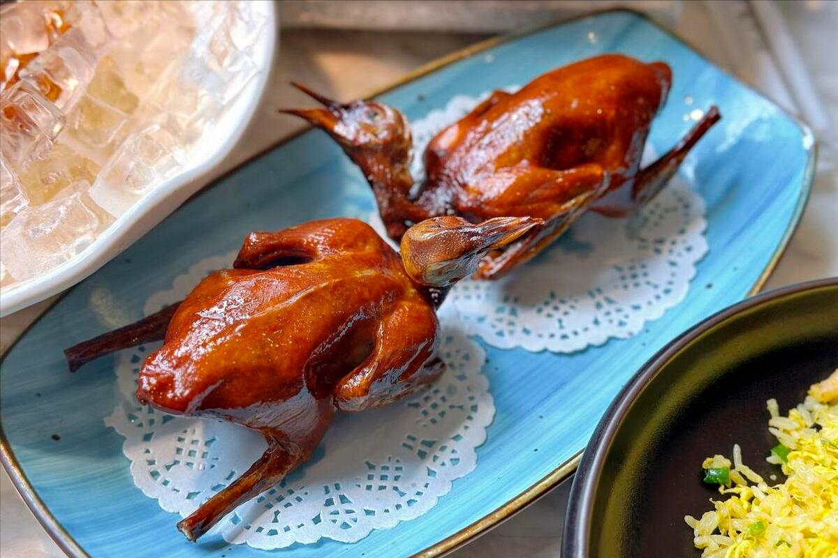 食材:乳鴿、生薑、醬油、白糖、蠔油、蜜糖
