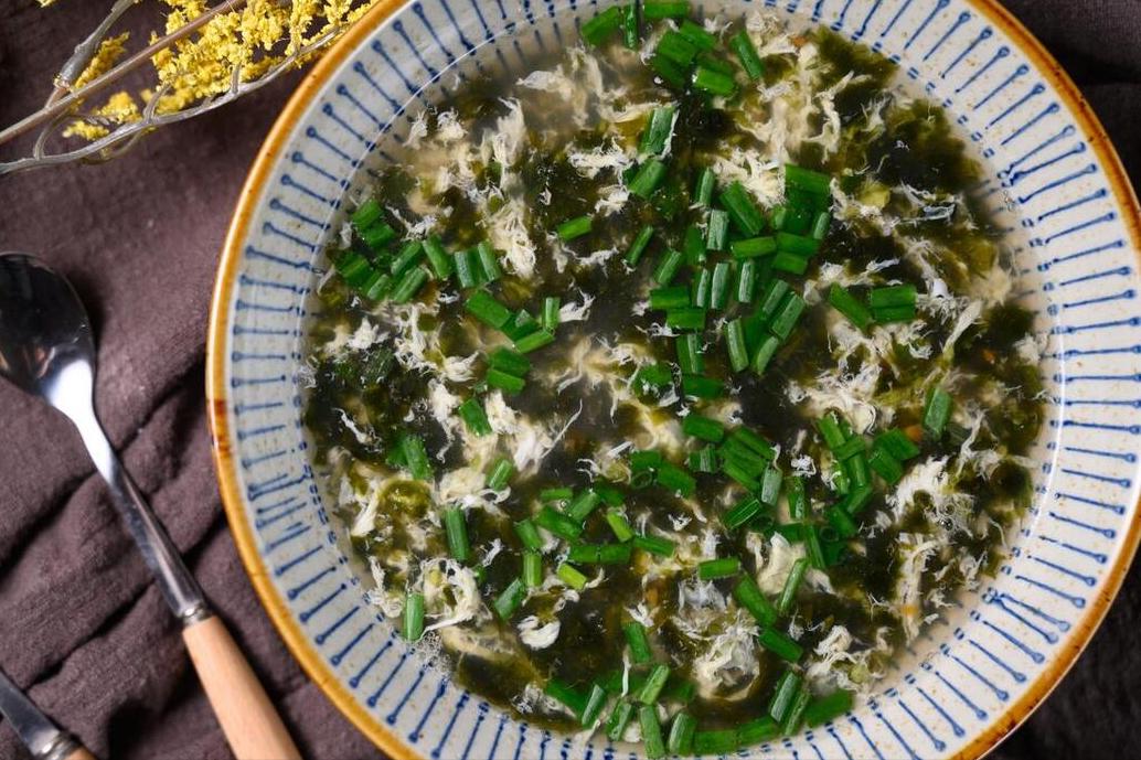 食材:紫菜、雞蛋、蝦皮、食鹽、白胡椒粉、雞精、蔥花、食用油