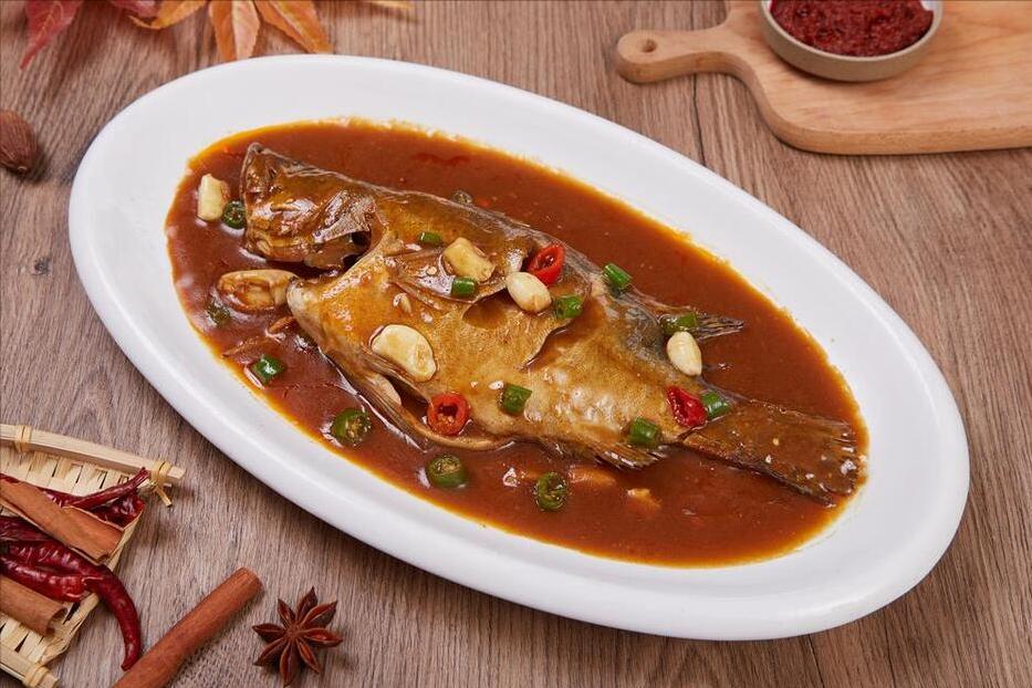 食材:魚、蔥姜、香菜、八角、生抽、老抽、蠔油、料酒、鹽、味精、白糖、食用油