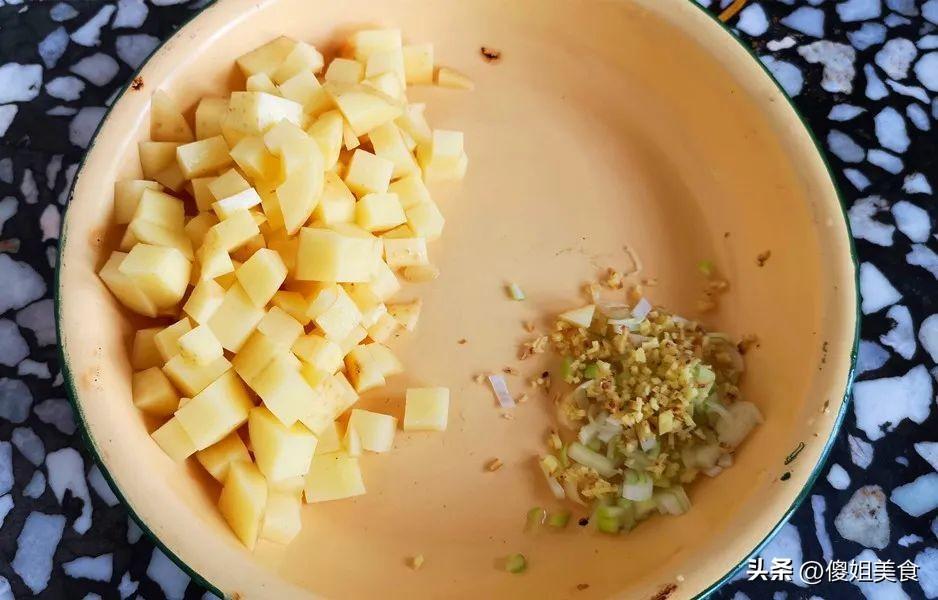 做法:1. 首先,將土豆去皮切成小丁,青紅椒切圈,鮮花椒洗淨備用。然後將蒜末和薑末準備好,待用。將切好的土豆丁放入鍋中,加入適量的水,煮至土豆熟透但不爛,然後撈出瀝乾水分備用。