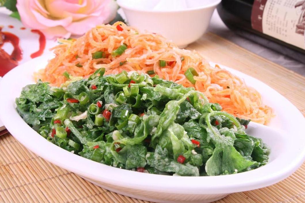 6、接下來開大火開始蒸,蒸上5分鐘完全可以了,因爲素菜都是好熟的,蒸時間久了反而不好喫。蒸好後立馬關火,掀開蓋子取出來,攤開晾涼以後即可開喫。還要用蒜末、鹽、雞精、香油、辣椒油做一個蘸料,鮮香又清爽,味道相當棒。