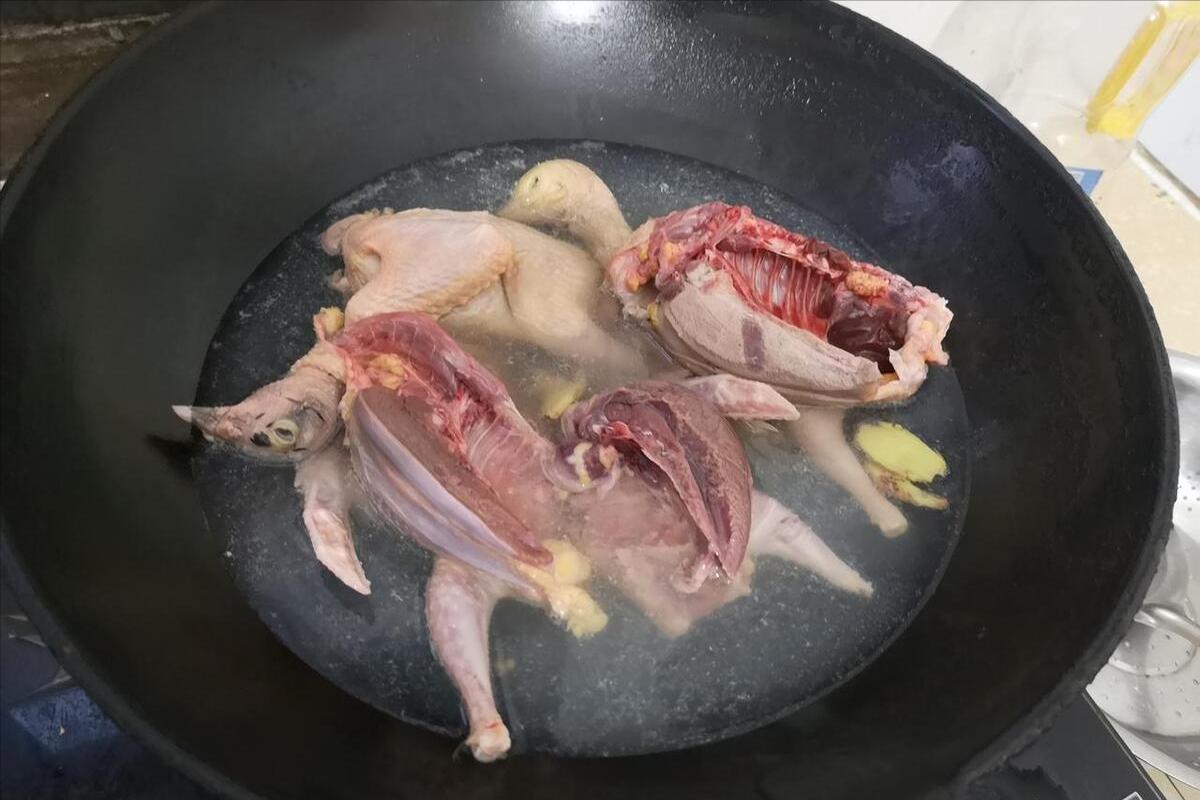 1、首先準備幾隻鴿子,我一般買2只個頭小一點的,有條件可以多買幾隻。買的時候,一定不能讓老闆切塊,只需要把毛髮、內臟處理好就行。切塊後血水流失,這是鴿子最有營養的部分,所以要整隻鴿子來燉,這是第1個要點。