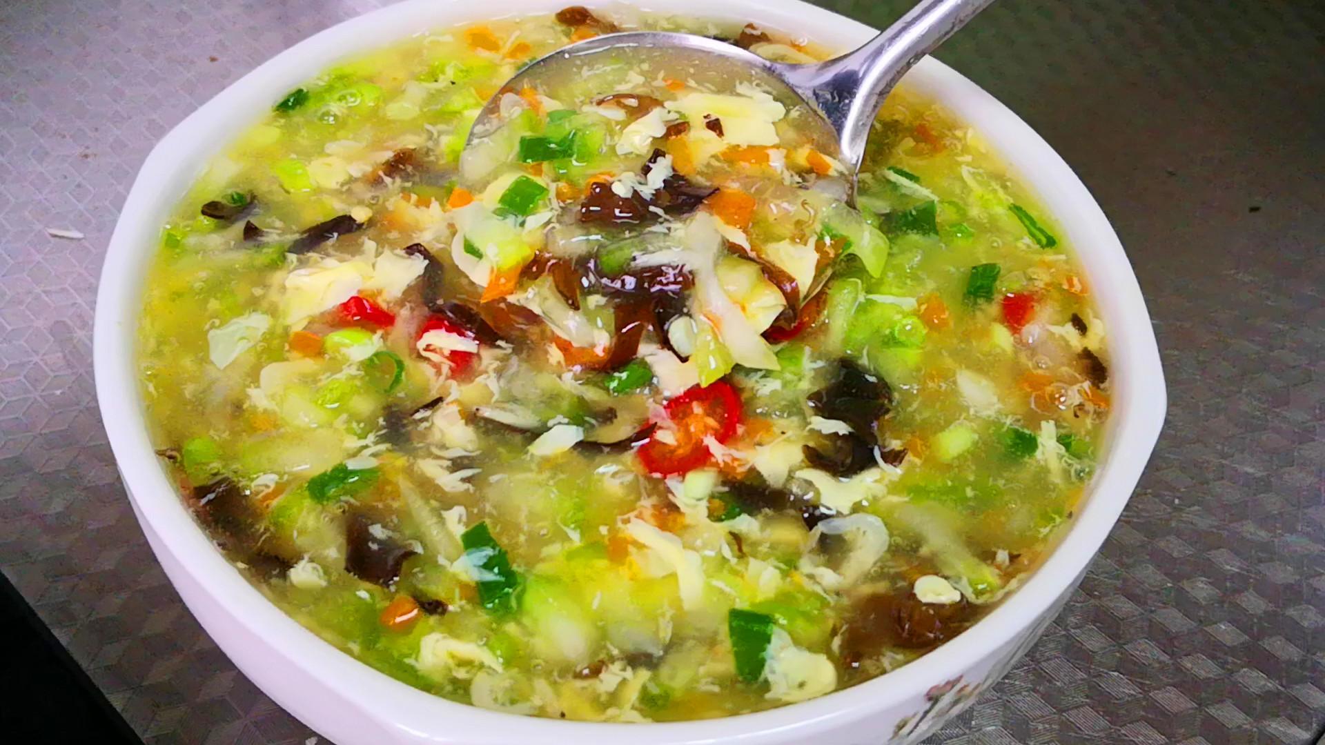 冬菇海米湯的做法:洗淨的冬瓜去頭去尾,去皮去瓤後切成小丁;泡發好的木耳切絲;洗淨的胡蘿蔔切丁;蔥切蔥花,小米辣切圈,一把海米用清水泡發20分鐘;起鍋加水,水開後放入冬瓜、胡蘿蔔和木耳,燒開後加入適量的水澱粉勾芡,目的是使湯汁濃稠不渾濁,再淋入雞蛋液,加入1把泡發好的海米,再次燒開後調味:加入1勺鹽,少許味極鮮,一點雞粉,最後倒入蔥花和小米椒,關火出鍋。