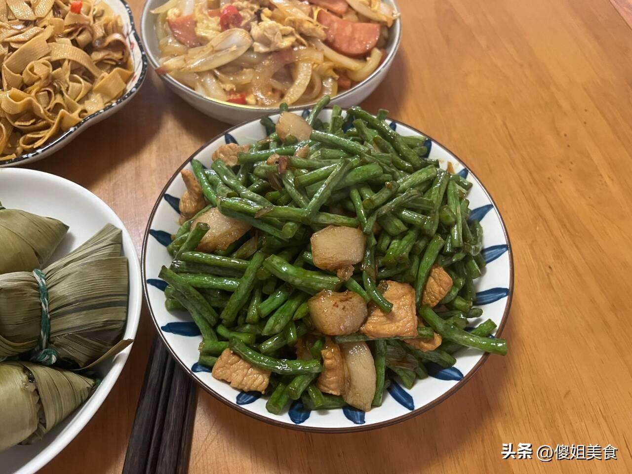 先把豬肉煸炒出油脂,再放入蔥花、小米辣炒香,隨後倒入豆角快速的翻炒,倒入1勺味極鮮、少許雞精和鹽調味,大火快速的翻炒,把豆角炒軟爛。簡單一炒豆角鮮美入味,一大盤子都喫光了。
