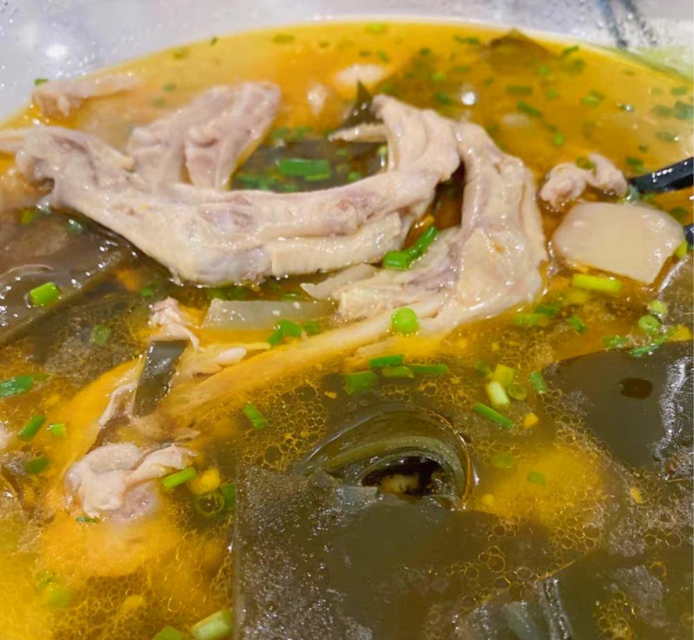 4.煮至鴨肉變軟爛後,再下入洗好切好的海帶,繼續煮至海帶變爛後加入適量的鹽調味,最後撒點蔥花就可以關火出鍋了,太香了!