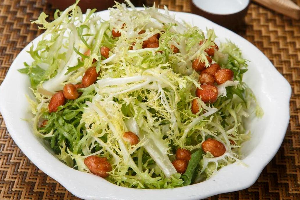 準備一把苦菊,摘洗乾淨以後,用鹽水浸泡15分鐘,隨後再衝洗一遍,然後切成小段,放在盤子裏備用。花生米炸好後,倒入苦菊中,準備一個小碗,倒入蒜末,來點熱油激發出香味,接着用鹽、白糖、白醋、香油調味,充分拌勻後倒入苦菊中,攪拌均勻即可開喫。
