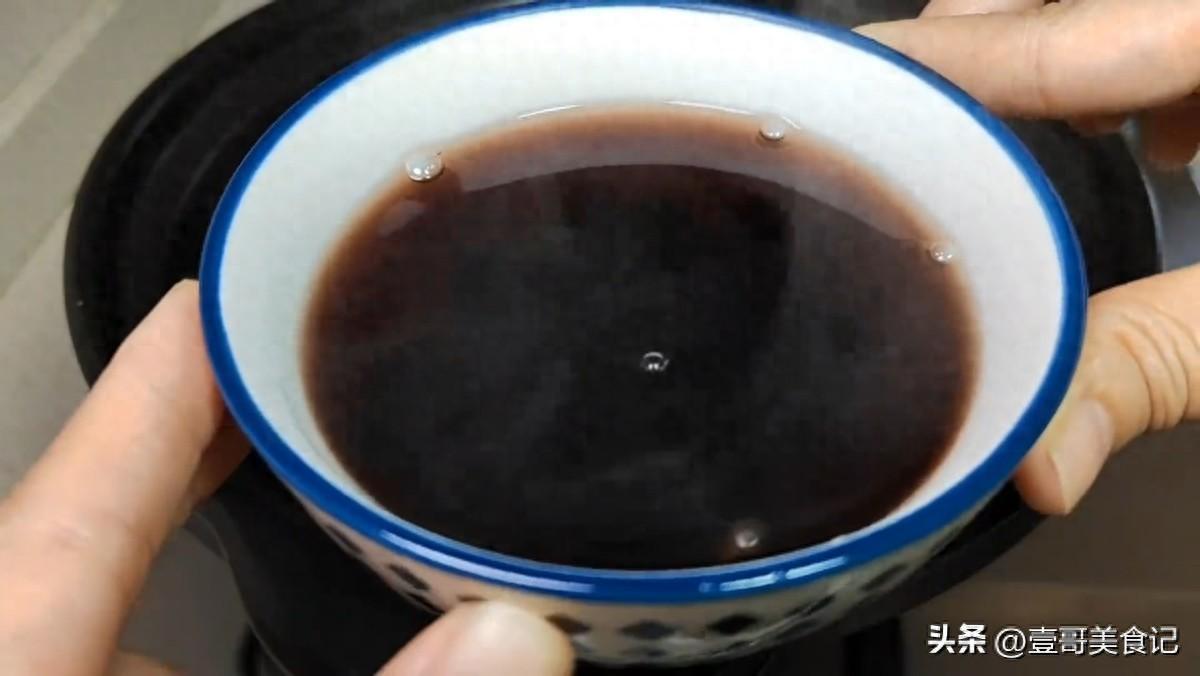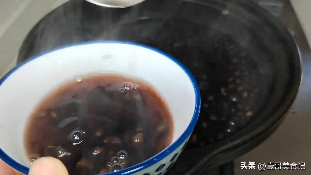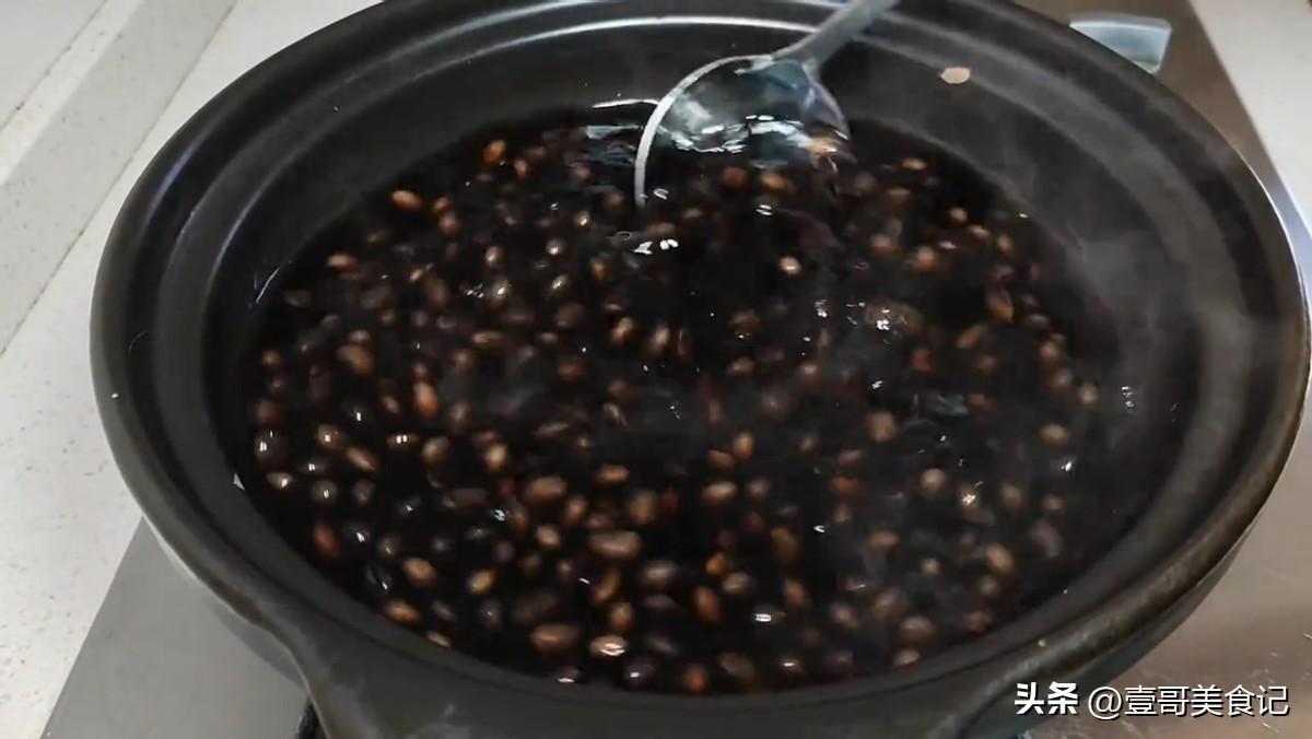 隨着煮制時間的推移,鍋中的水分會逐漸蒸發,黑豆水也會變得越來越濃稠。當鍋中的黑豆水被煮到只剩原來的一半時(即兩碗水煮成一碗水),即可關火。此時的黑豆水顏色呈淺淺的酒紅色,香氣撲鼻,誘人食慾。