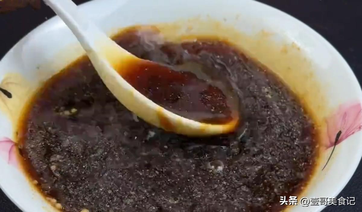 第六步,準備料碗。接着再取出一個小碗,先加入一點食鹽和雞精,胡椒粉也要放進去一些,然後倒入生抽和老抽各半勺,好友也加入一首,再倒入半碗清水,將它們攪拌均勻後,料汁就準備好了。