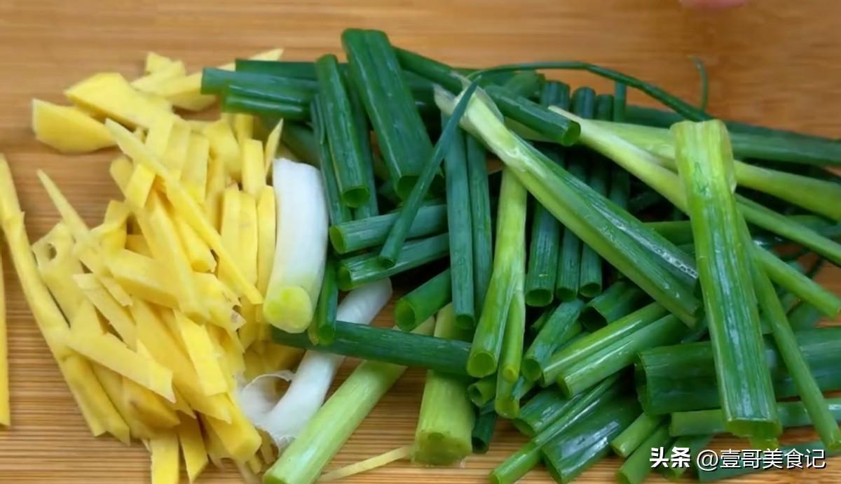 第三步,準備蔥薑蒜。做魚一定要用蔥姜來去腥。先準備幾個生薑,全部切成片,再切成細絲就可以了。再準備幾根蔥,清洗乾淨之後,切成半指頭長的小段就可以了。大蒜可以多準備一些,因爲大蒜做熟出來也非常香,我們把去皮的大蒜切成片,單獨放在一起。