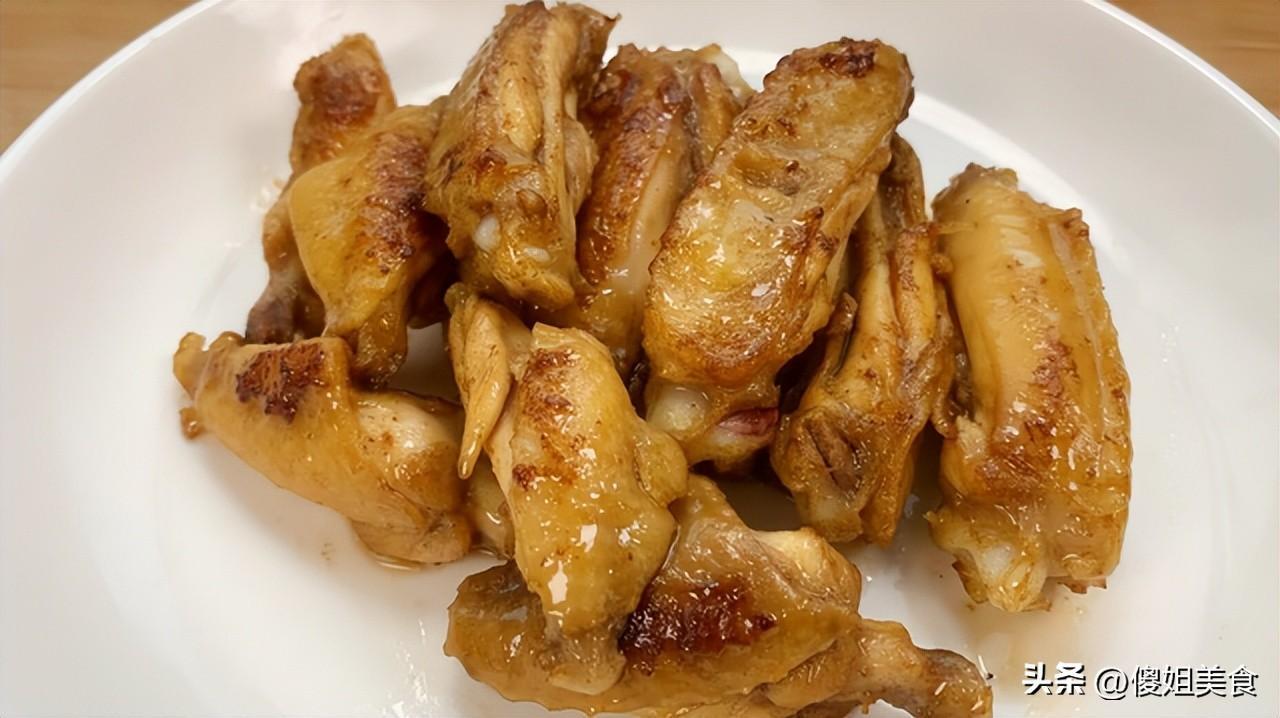 - 鍋中倒入適量油,油溫五成熱時,下入雞翅中,中小火慢煎至兩面金黃且熟透。