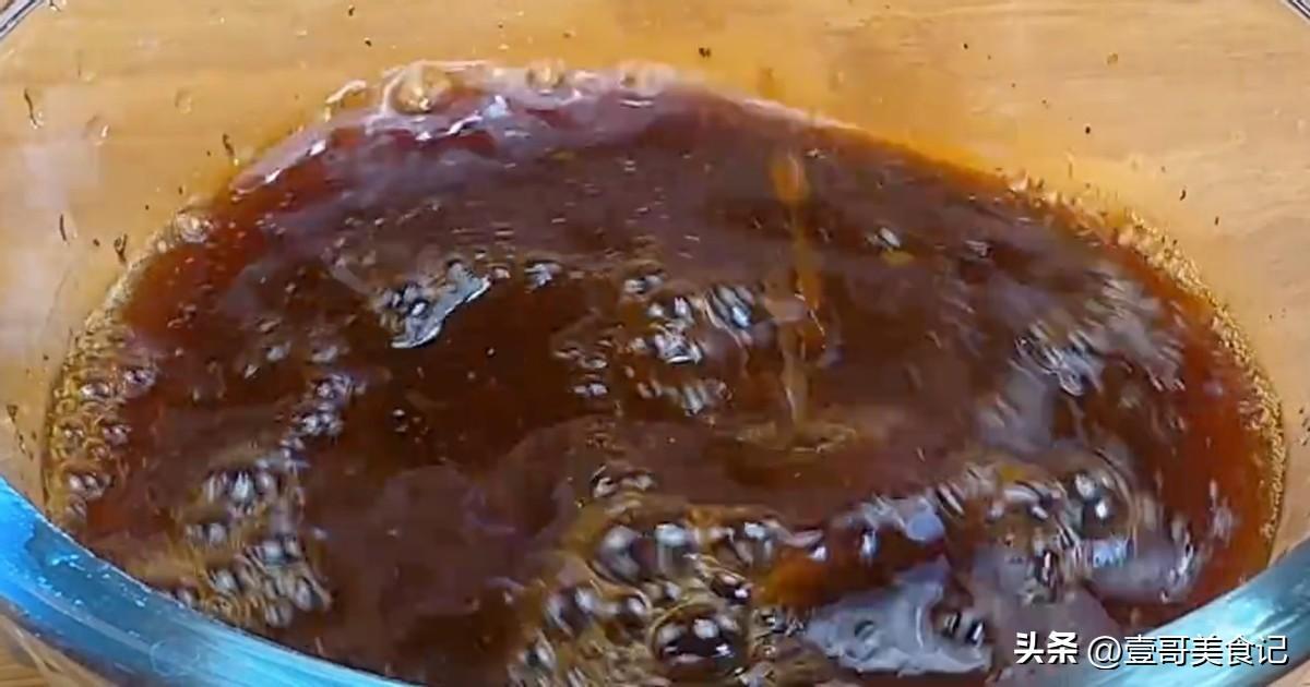 第十一步,準備料汁。取出一個小碗,先給裏面倒入一些生抽和老抽,然後再加入雞精和胡椒粉,番茄醬加進去兩勺就夠了,接着把前面醃製完,冬瓜的冬瓜水倒進碗裏面,攪拌均勻後,料汁就準備好了。