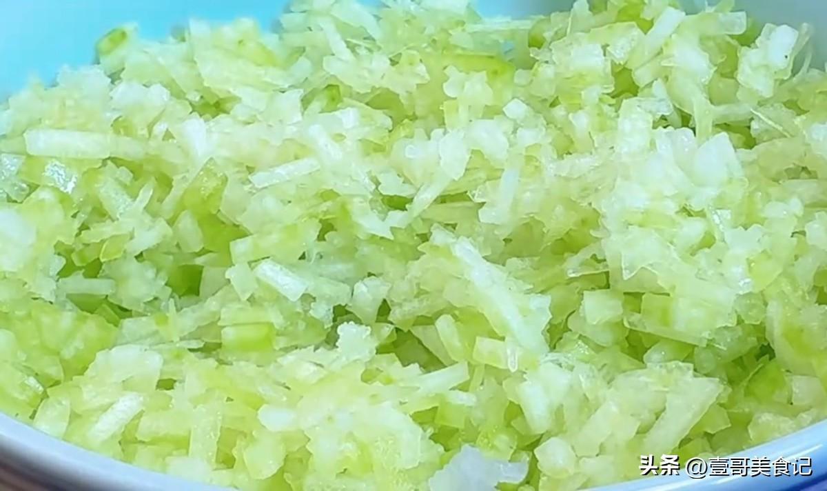 第二步,醃製冬瓜碎。現在我們給裝了冬瓜碎的盆子,裏面加入一點食鹽,最好還要加入一點白糖,接着用筷子把它們攪拌均勻,然後就把冬瓜碎放在一邊醃製備用。家屬白糖醃製冬瓜會讓冬瓜口感更好。