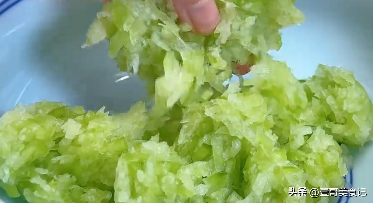 第八步,準備冬瓜碎。冬瓜到現在已經醃製了很長時間了,盆子裏也出來很多水。我們準備一大塊紗布,將冬瓜全部放到紗布裏面,然後再用力的擠出它裏面的水分,注意了醃製冬瓜的水放在盆子裏面,後面也要用喲,把擠幹水的冬瓜碎放在另外一個盆子裏待用。