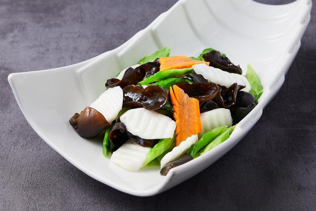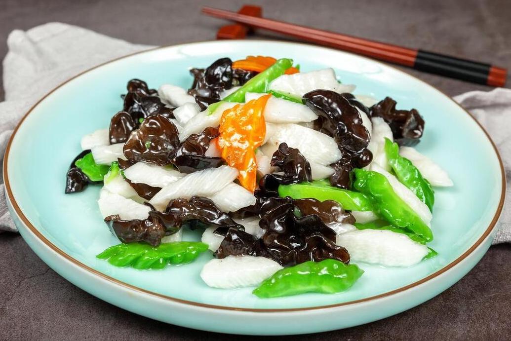 山藥削皮切片,木耳泡發洗淨,青辣椒和胡蘿蔔切片,然後往鍋中加油燒熱,放點蔥花進去爆香後,放上山藥、木耳、胡蘿蔔進行炒制,炒到斷生後加入青辣椒,用鹽和雞精調味後,出鍋開喫。