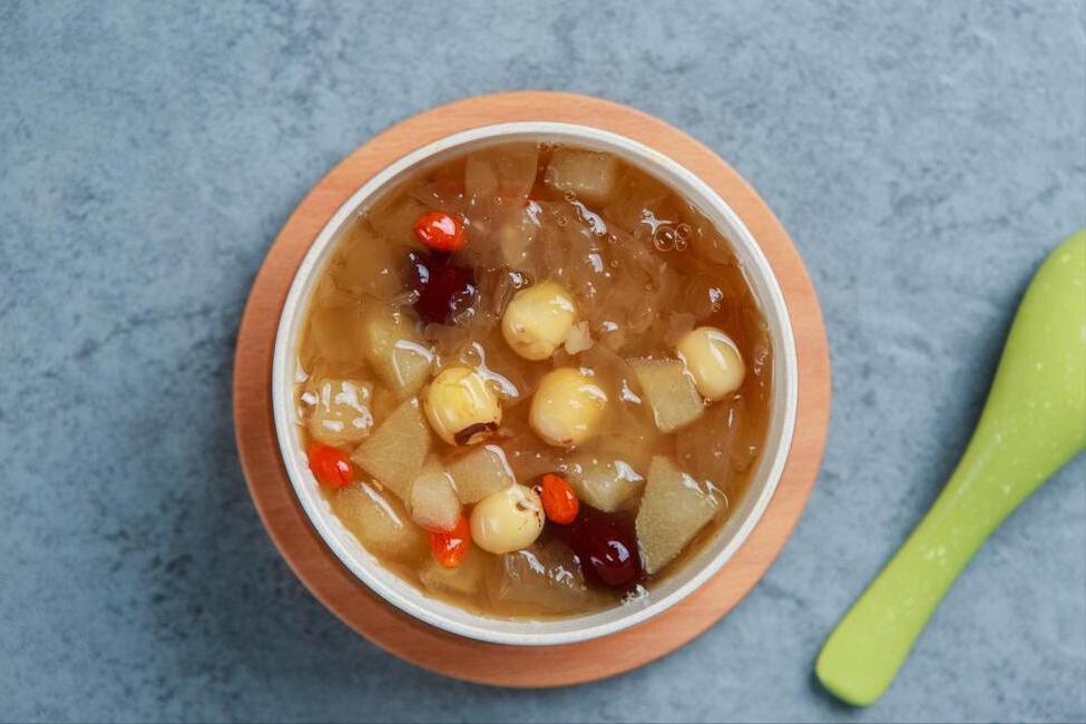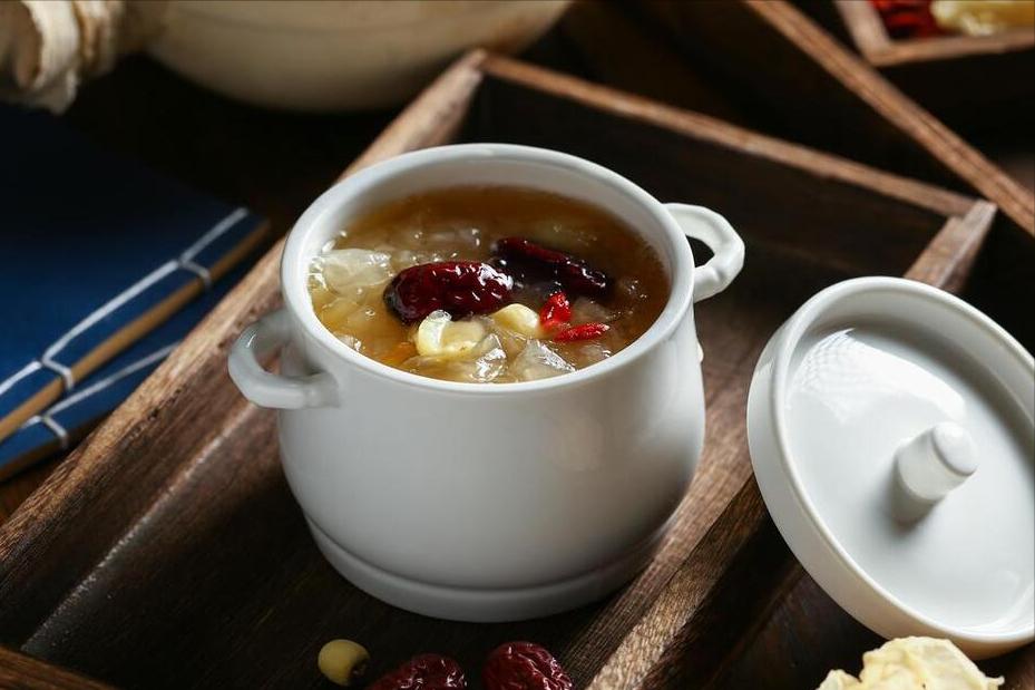 銀耳提前泡發,泡軟後撕碎,倒入鍋中添上清水開始煮,大火煮開後再用小火煮20分鐘。趁此時間,把蓮子洗淨、枸杞紅棗也都洗淨,20分鐘後將蓮子和紅棗放入鍋中,繼續燉20分鐘,出鍋前加上冰糖和枸杞,就可以啦。