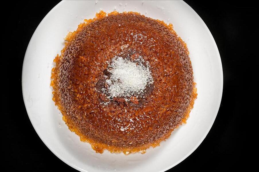 3、隨後放上剩下的糯米和紅糖,然後把清水倒進去,接下來放入鍋中,蓋上蓋子開始蒸,至少要蒸上1個小時的時間,糯米纔會熟。到時間以後取出來,等不燙手了以後倒扣過來就可以啦,色香味俱全。