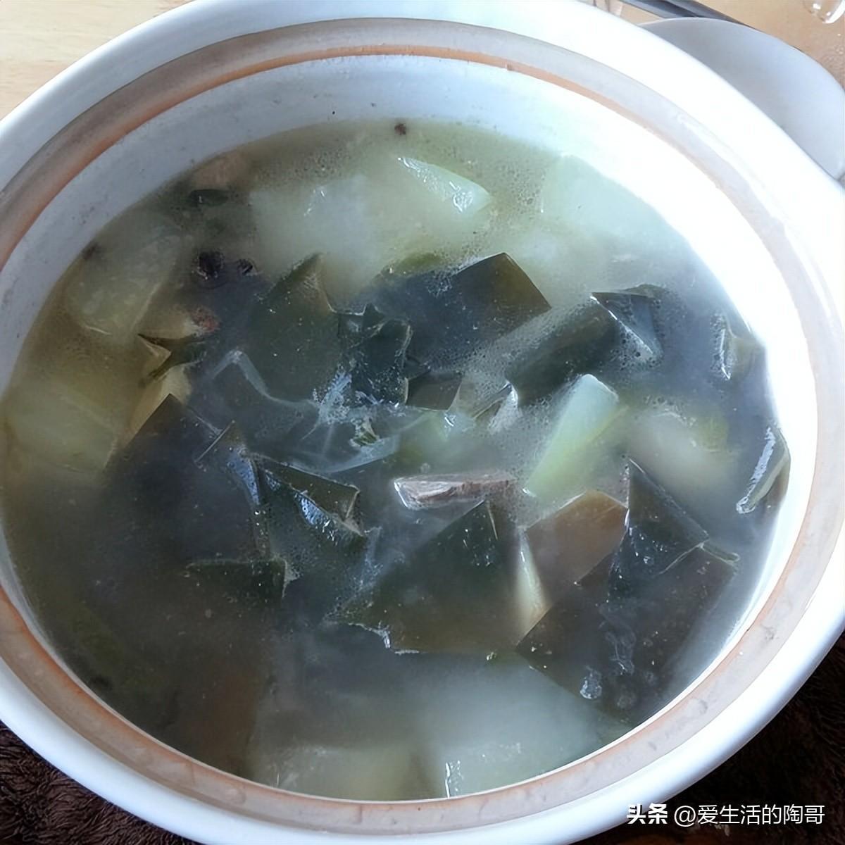 4鍋里加入清水, 大火煮開,加入海帶,冬瓜片讓其煮沸