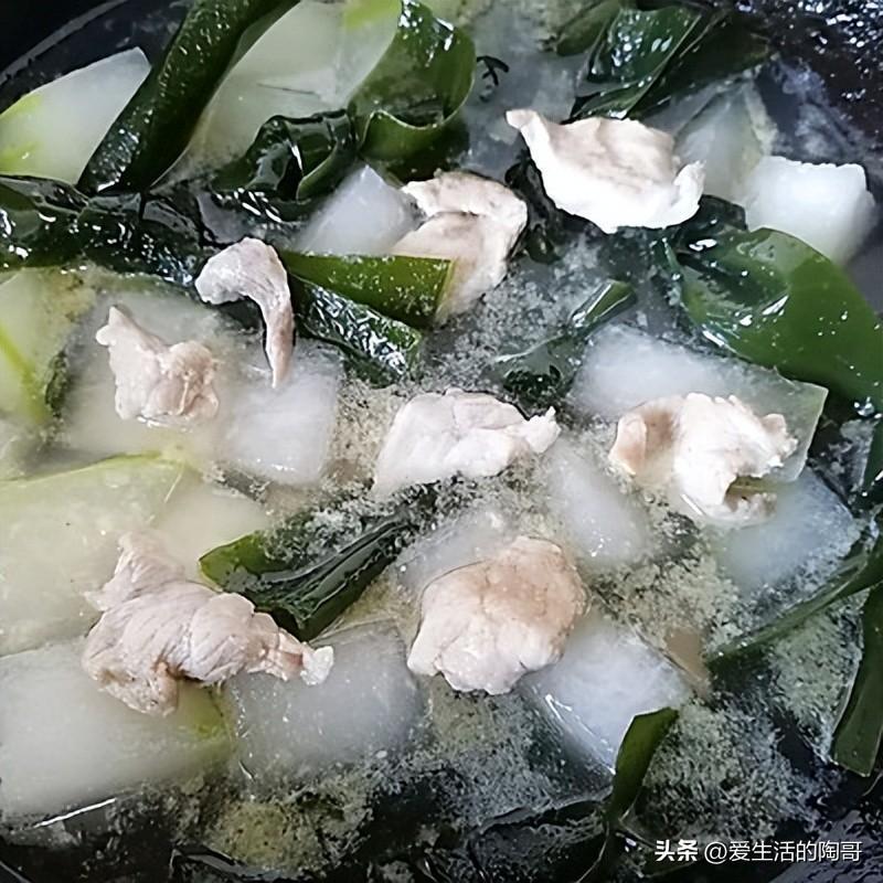 食材;冬瓜1塊,海帶,瘦肉,鹽, 胡椒粉,蔥花,香油