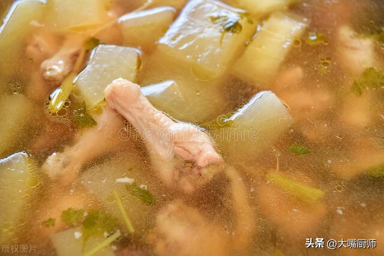 (3)加入冬瓜塊,繼續燉煮30分鐘,加鹽調味即可。