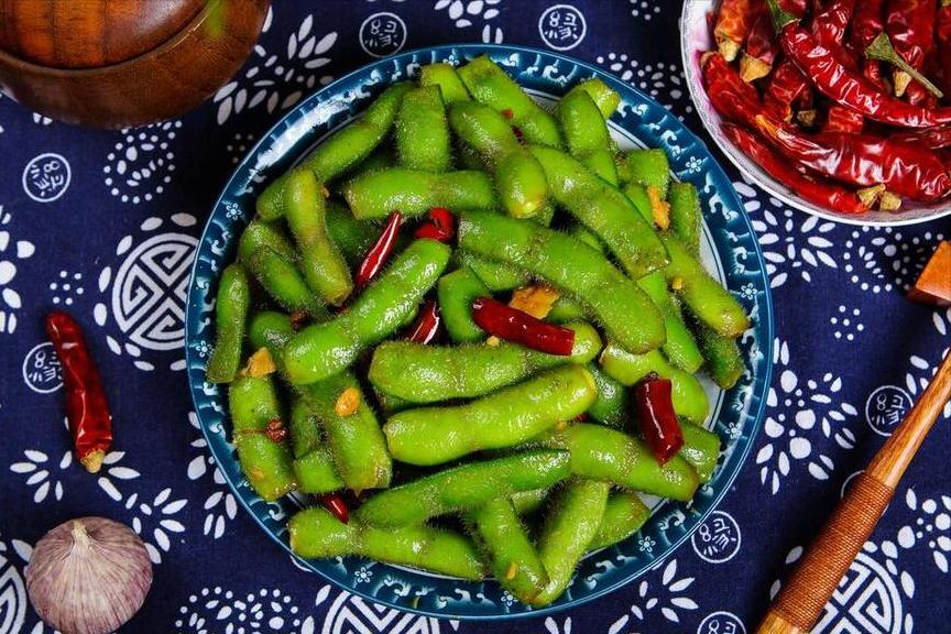 用到:毛豆、花椒、香葉、八角、幹辣椒、鹽、香油