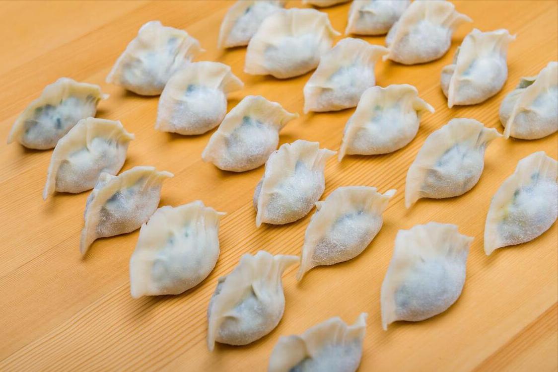 用到:韭菜、豬肉、花椒水、蔥姜、鹽、姜粉、生抽、蠔油、香油、餃子皮