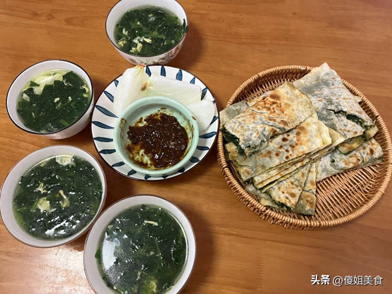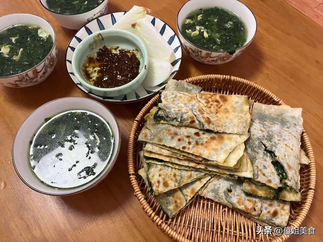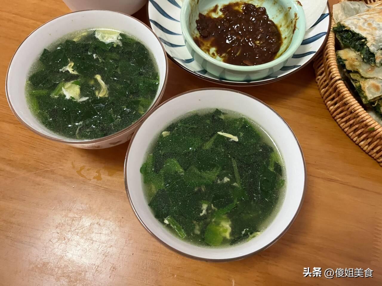 我家做菠菜雞蛋湯從來都不熗鍋,直接把切好的菠菜段丟入沸騰的鍋中,撒點鹽,再來香油增香,最後淋入一個雞蛋液,鮮美好喝的菠菜雞蛋湯就做好了,爽口解油膩,一頓能喝三大碗。配着我烙的菜餅喫,保準你喫撐了,太解饞了。想喫的朋友可以來我家蹭飯啊,做給你們喫。