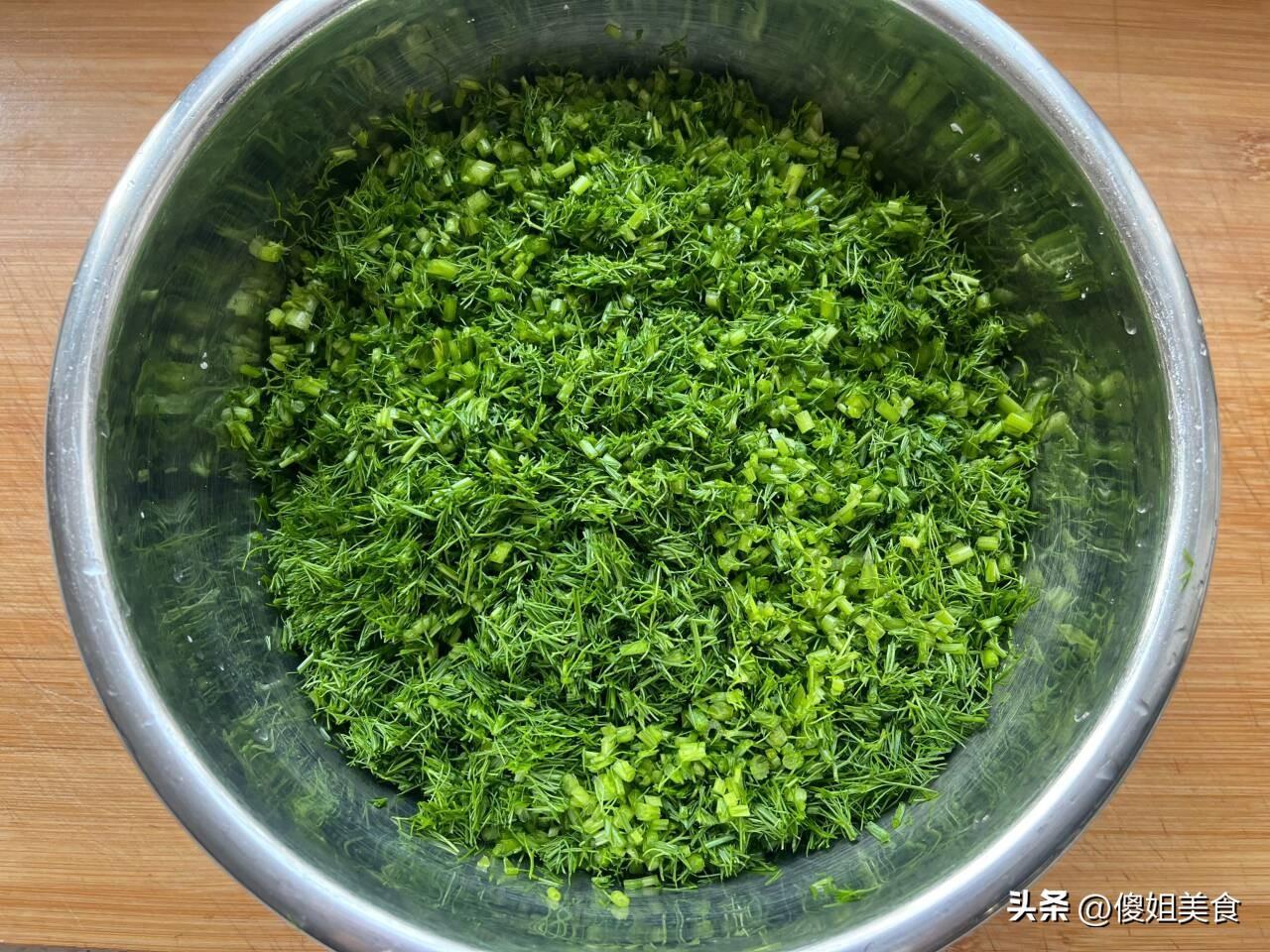 今年雨水天氣多,小菜園都不用提水澆了,各種蔬菜長的都很好。一把新鮮的茴香菜洗淨,然後切成小碎丁,茴香菜內撒少許的食用鹼,使茴香不發黃,口感還好喫。然後再放入一勺食用油攪拌均勻鎖住水分,炒2個雞蛋碎放進去、2勺蠔油、香油和鹽調味,翻拌均勻備用即可。