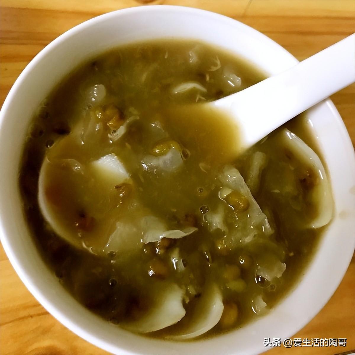 推薦喫法,綠豆湯。綠豆煮熟後製成綠豆湯,搭配其它食材,好喝美味,夏天好處多多。
